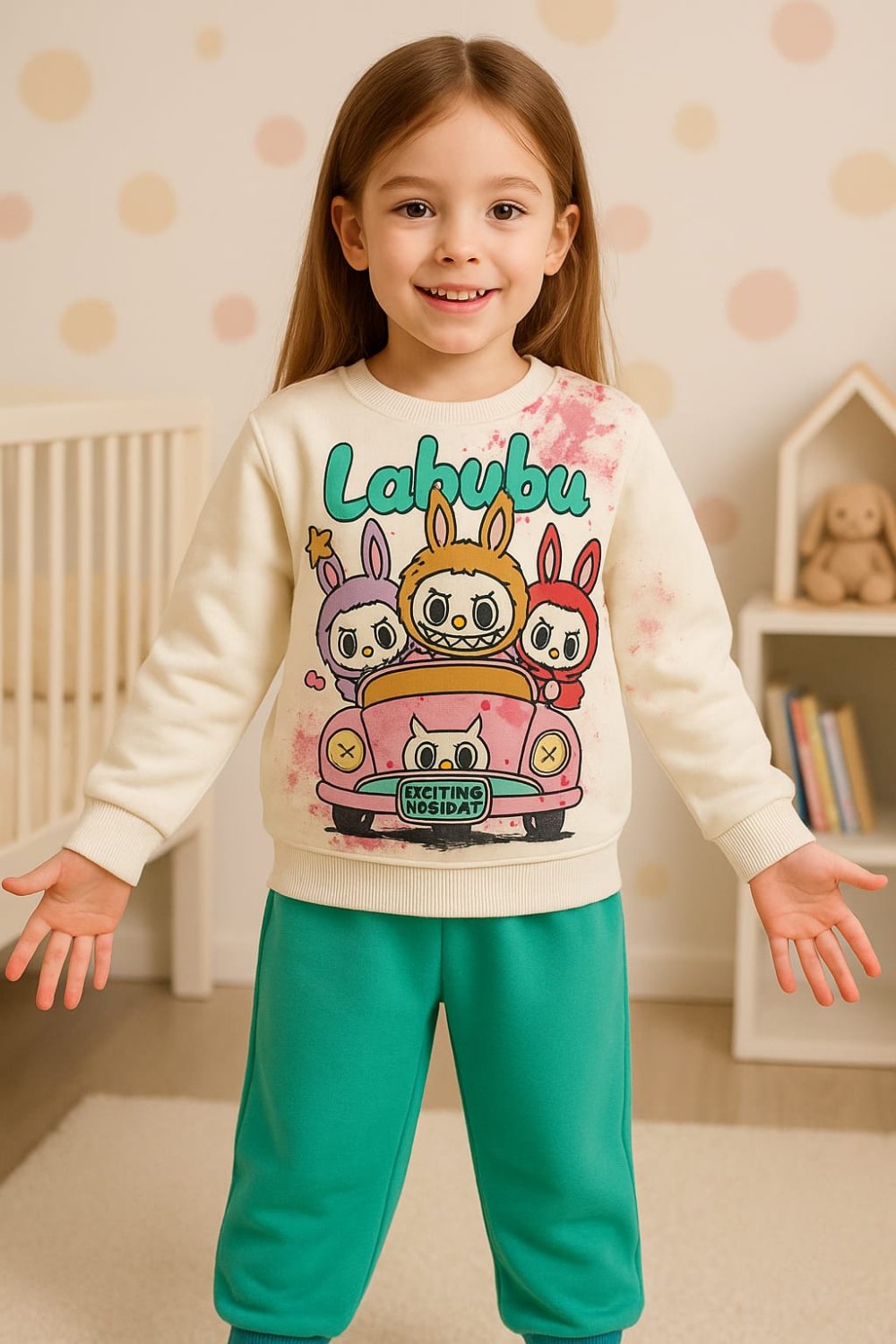 2 İP ŞARSONSUZ KIZ ARABALI LABUBU EŞOFMAN TAKİMİ Yeşil