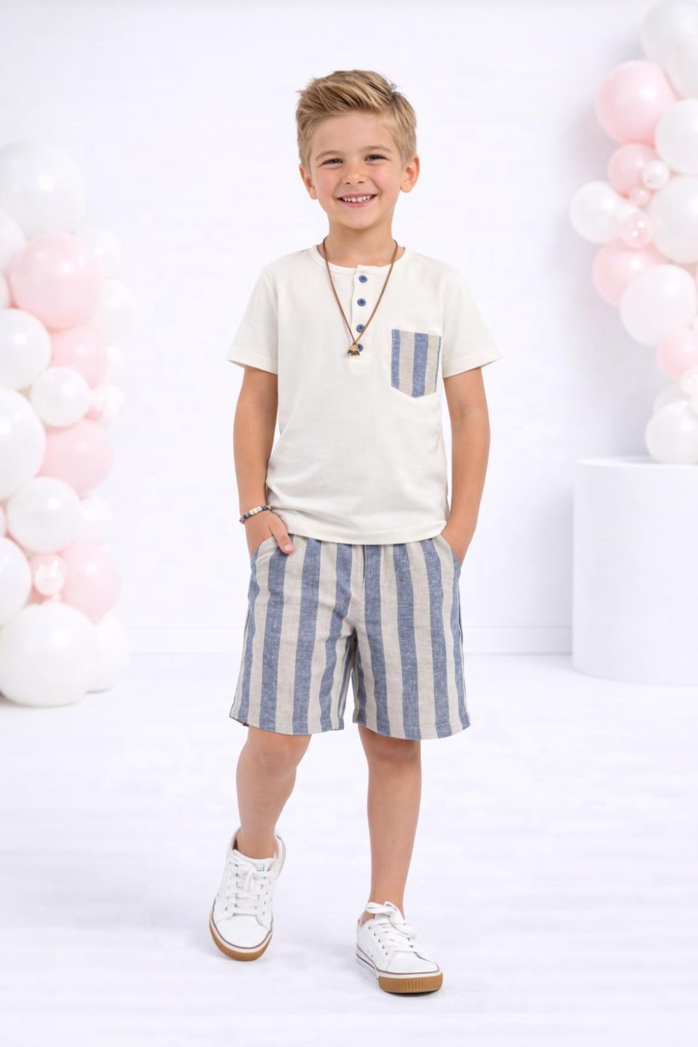 ✨ Çizgi Detaylı Şortlu Takım ✨ ? 3 düğmeli, cepli şık üst tasarım ? Şortu ve cebinde kalın çizgi detayları ile sportif ve modern görünüm ? Hafif ve rahat kumaşıyla yaz günleri için ideal ? 4-5 / 8-9 yaş arası ? Fiyat: 500 TL ? Enerjik ve tarz sahibi minikler için harika kombin!