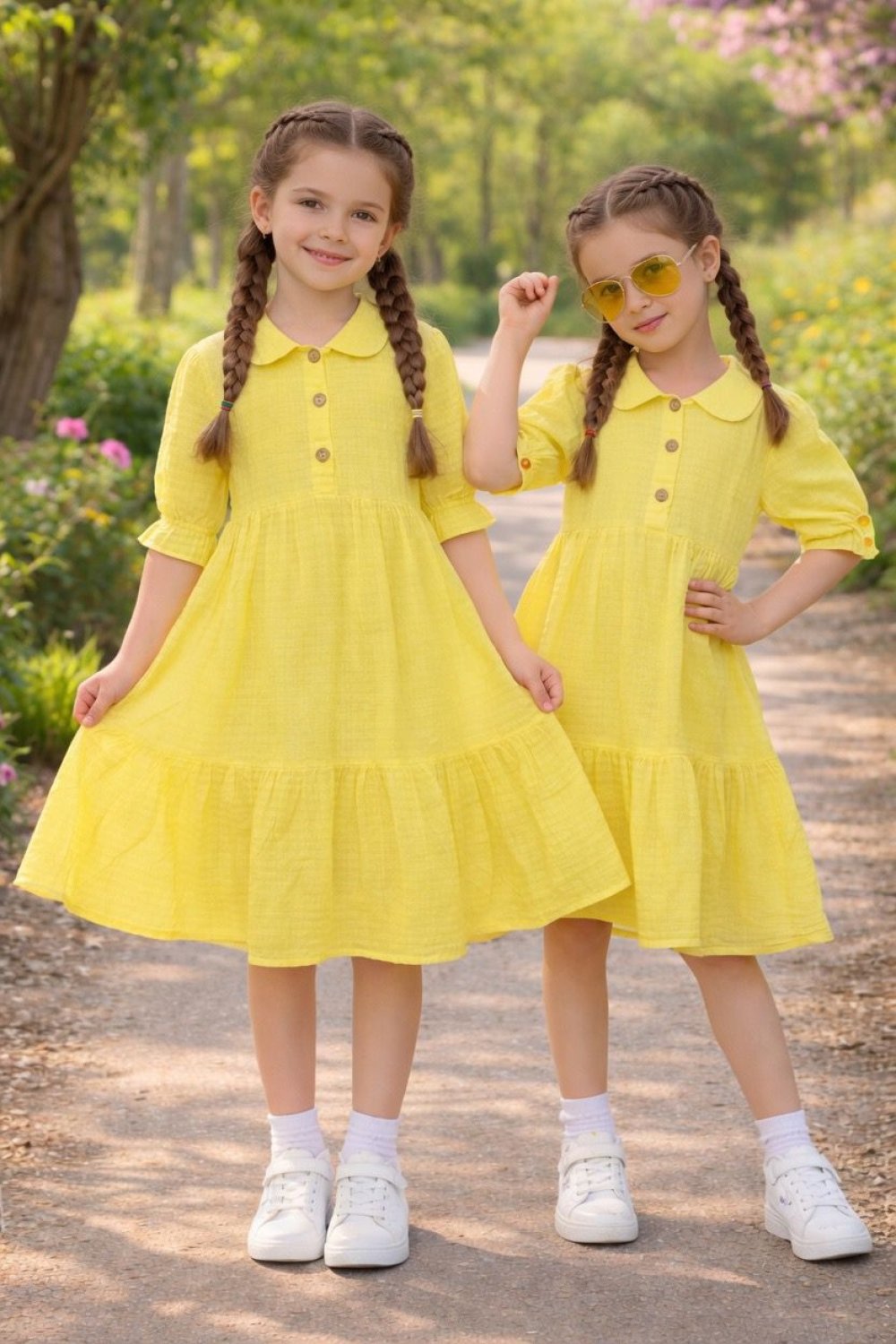 Şıklık ve rahatlık bir arada! ✨ Yarım kol, 3 düğme detaylı ve şapkalı elbise ile miniklere hem tarz hem konfor ? Yumuşak kumaşı ve rahat kesimiyle yaz günlerinin favorisi olacak! ? 4-5 yaş & 12-13 yaş ? 250 TL ? Günlük kullanım için ideal, hafif ve ferah tasarım!