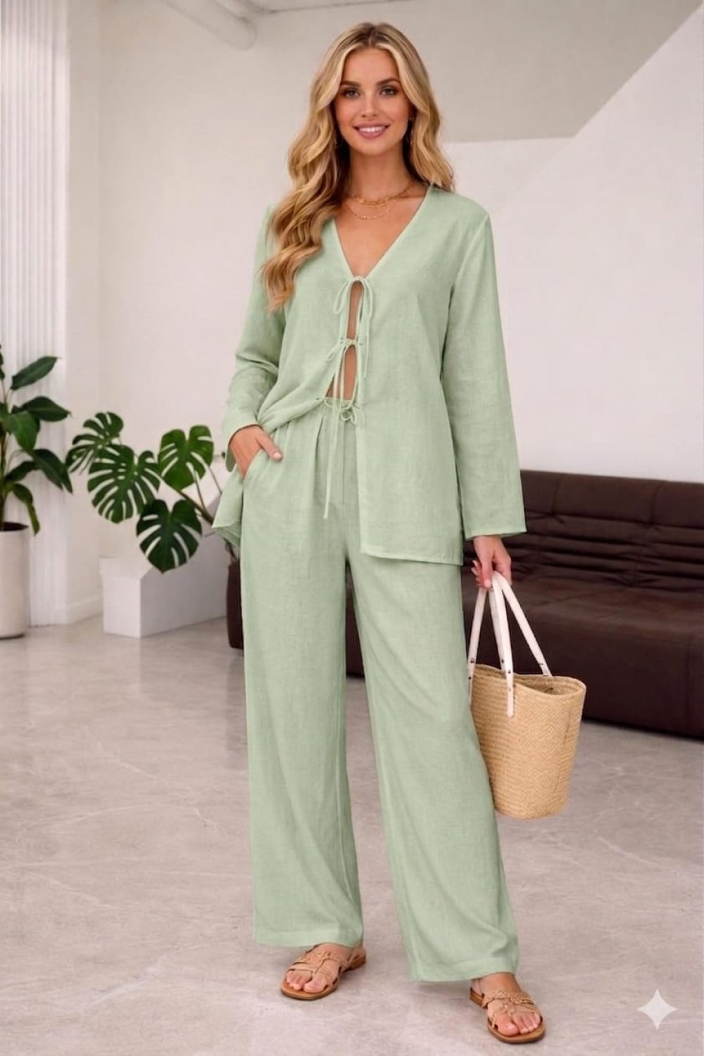 **? BOHEM ŞIKLIK: KETEN DOKULU BAĞLAMALI TAKIM ?** Yazın ferahlığını ve zarafetini üzerinizde taşıyın! Nefes alan dokusu ve modern bağlama detayıyla hem plajda hem şehirde stilinizi konuşturun. ### **? Ürün Detayları:** * **? Fiyat:** 1000 TL * **? Beden Seçenekleri:** 36 / 38 / 40 * **? Üst:** Önü üçlü bağlama detaylı, V yaka, salaş kesim tunik ceket. * **? Alt:** Yüksek bel, geniş paça, konforlu kesim pantolon. * **☁️ Kumaş:** Terletmeyen, hafif ve doğal görünümlü keten karışımlı doku. ### **✨ Neden Bu Takımı Almalısınız?** * **Çok Yönlü Kullanım:** İster takım olarak giyin, ister üstünü jeanlerle, altını basic askılılarla kombinleyin. * **Konforlu Şıklık:** Bağlama detayları sayesinde dekolte derinliğini kendinize göre ayarlayabilirsiniz. * **Yazın Favorisi:** Tatil valizlerinin kurtarıcı parçası! **?️ Stoklar Sınırlıdır!** Bu zahmetsiz şıklığa sahip olmak için bize DM üzerinden ulaşabilir veya profilimizdeki linkten sipariş verebilirsiniz. **#ketentakım #yazmodası #beachwear #bohemstil #beyaztakım #yenisezon #kombinönerisi #tatilmodası**