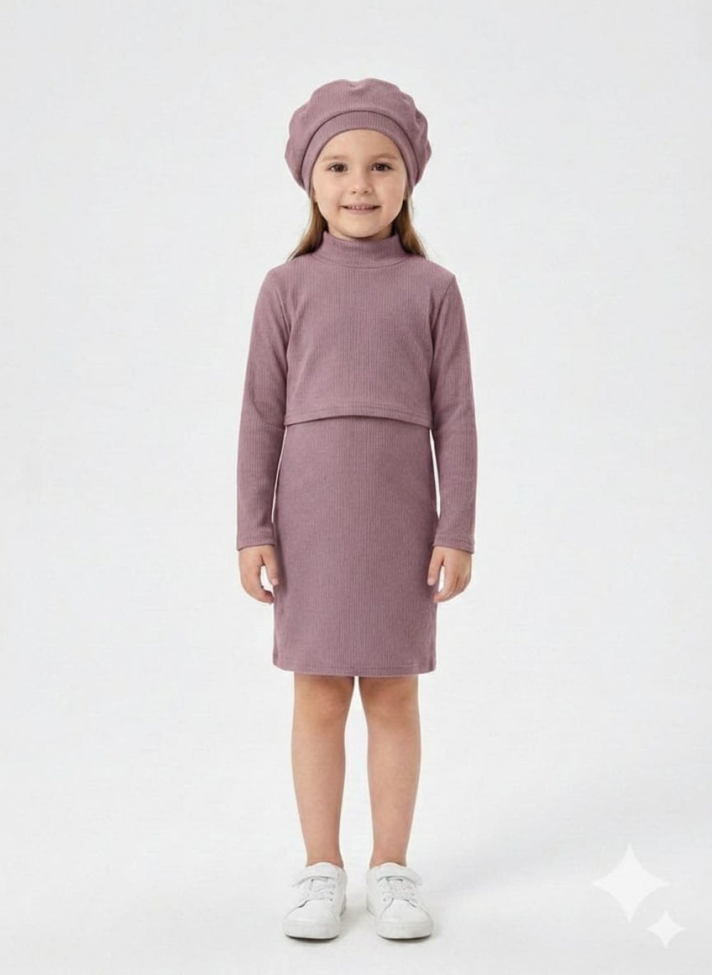 3 LÜ ŞAPKALI FİTİLLİ ELBİSE Mürdüm