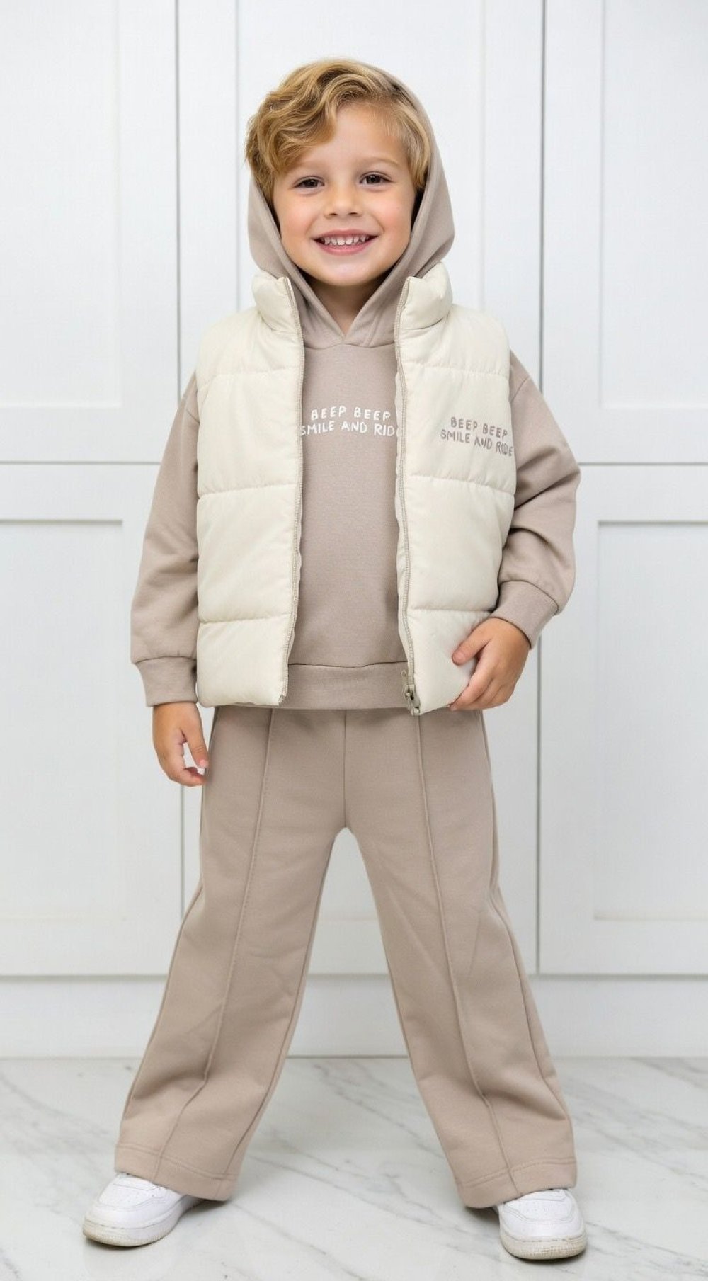 3 LÜ YAZILI ŞİŞME YELEKLİ TAKIM Bej