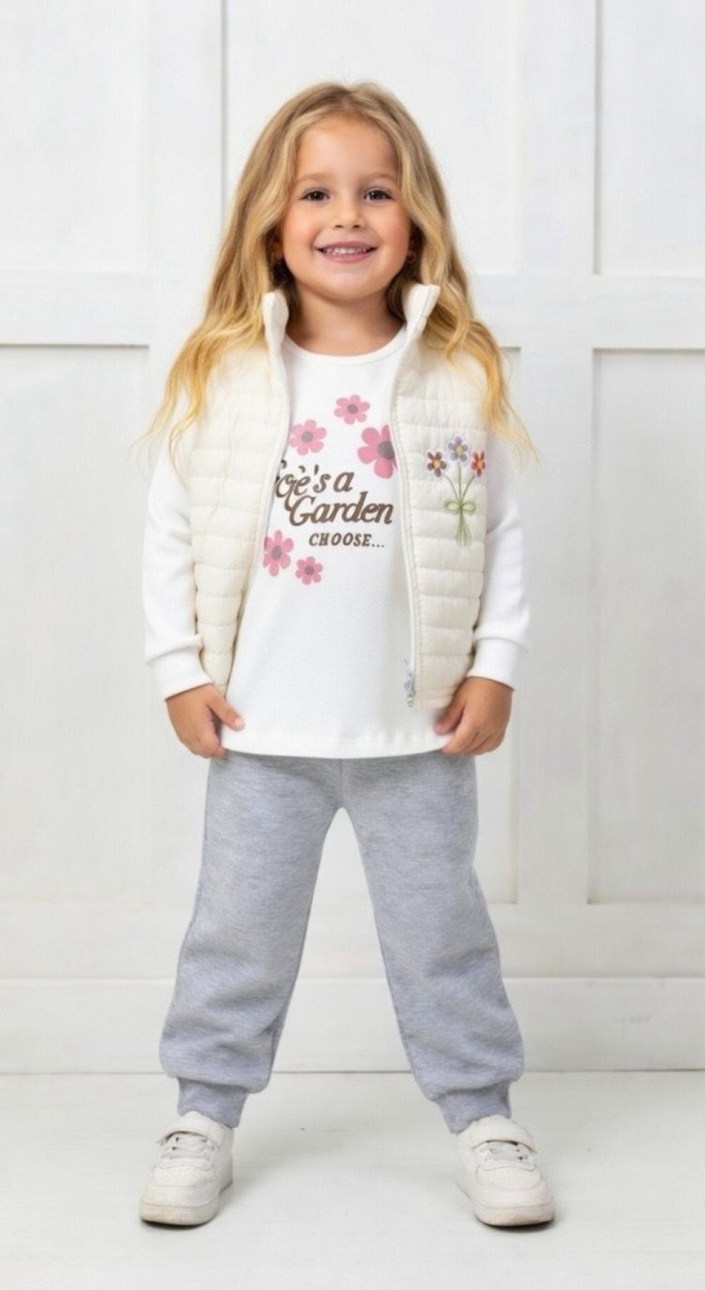 3 LÜ YELEKLİ ÜÇ ÇİÇEKLİ TAKIM Beyaz