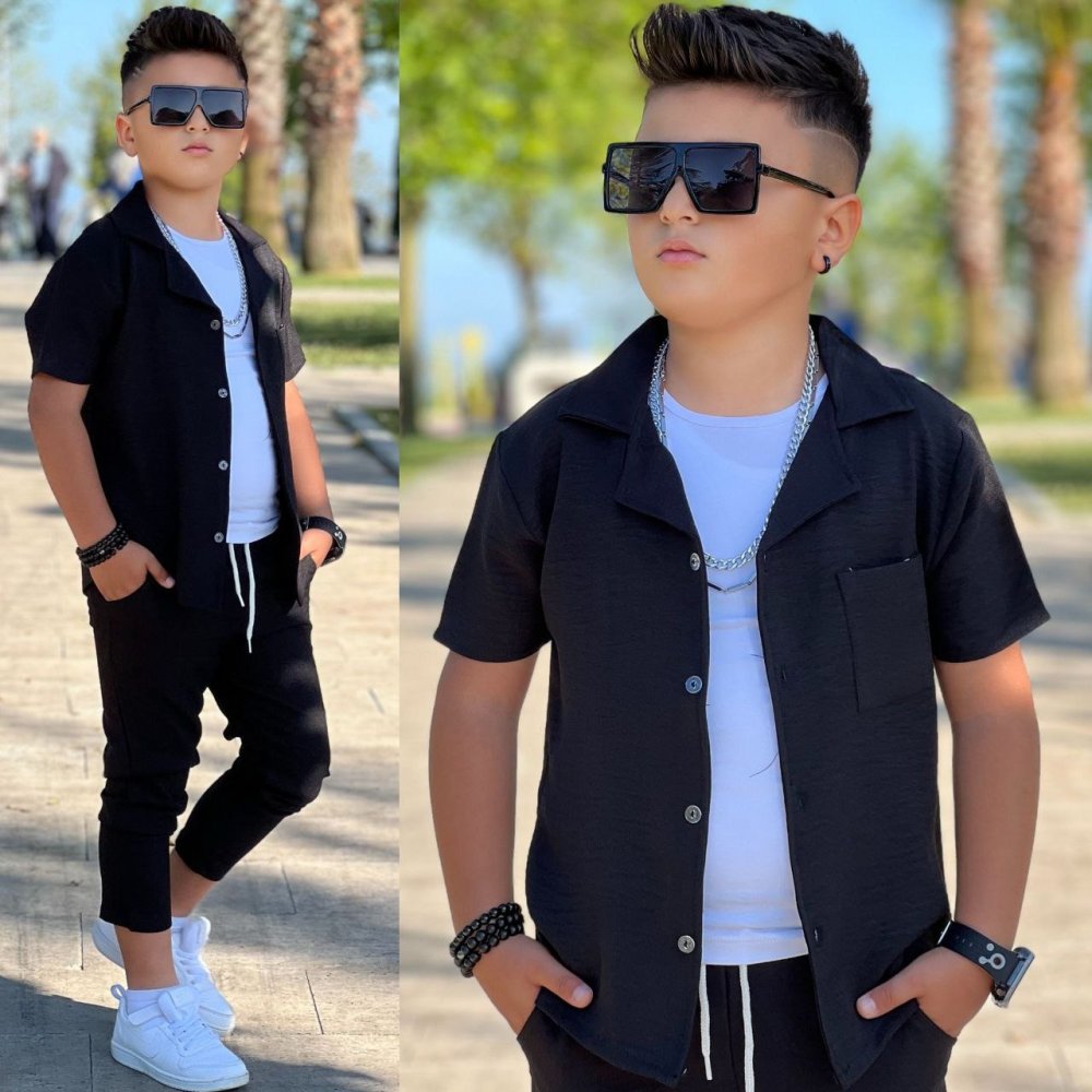 3 PARÇA YAKALI ALT UZUN KETEN ERKEK TAKIM Siyah