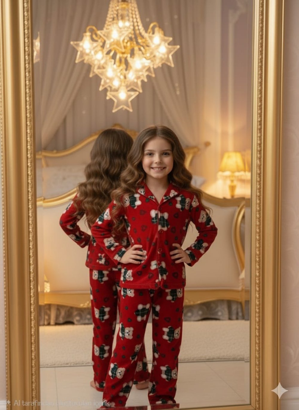 AYICIK DESEN PİJAMA TAKIMI Kırmızı