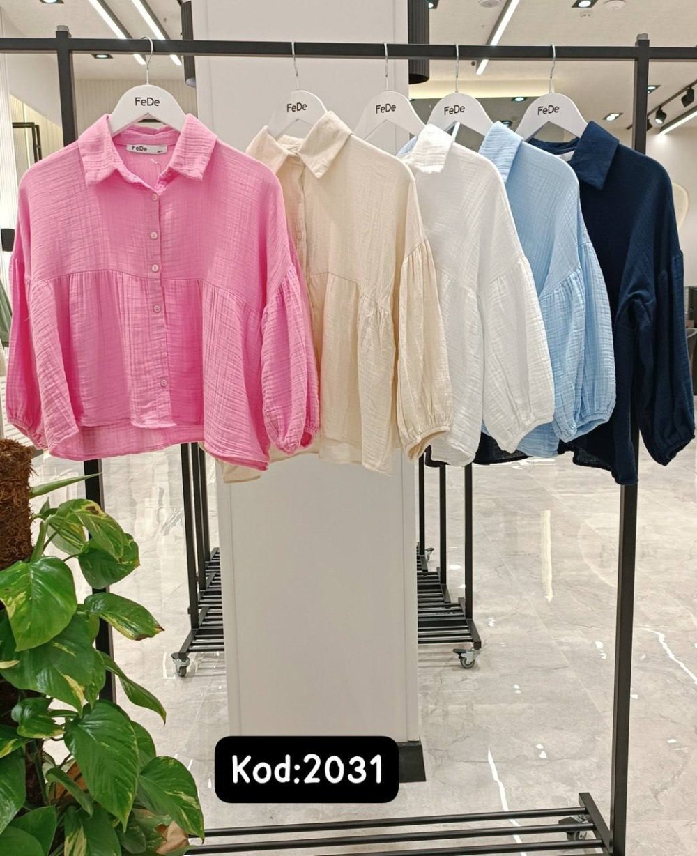 ✨ Balon Kol Müslin Gömlek Bahar ve yaz aylarının vazgeçilmezi müslin doku şimdi en tatlı renkleriyle stoklarda! Rahat kesimi ve balon kol detayıyla hem ferah hem de çok tarz. * ? **Bedenler:** 36 - 38 - 40 * ? **Fiyat:** 400 TL * ?️ **Kod:** 2031 * ? **Renkler:** Pembe, Ekru, Beyaz, Bebe Mavisi, Lacivert * ? **Sipariş İçin:** Hemen DM veya WhatsApp üzerinden bize ulaşabilirsiniz!