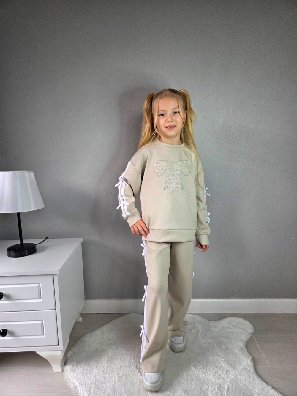 BAYRAMLIK İNCİLİ FİYONK KOLLARI VE PANTOLONU ŞERİTLİ İSPANYOL TAKIM Krem