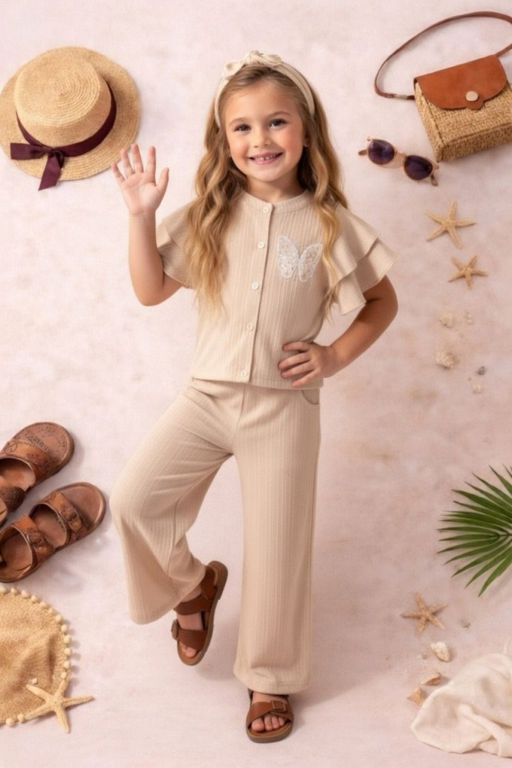 BAYRAMLIK KOLLARI FIRFIR KELEBEKLİ SAÇ BANTLI GÖMLEK TAKIM Bej