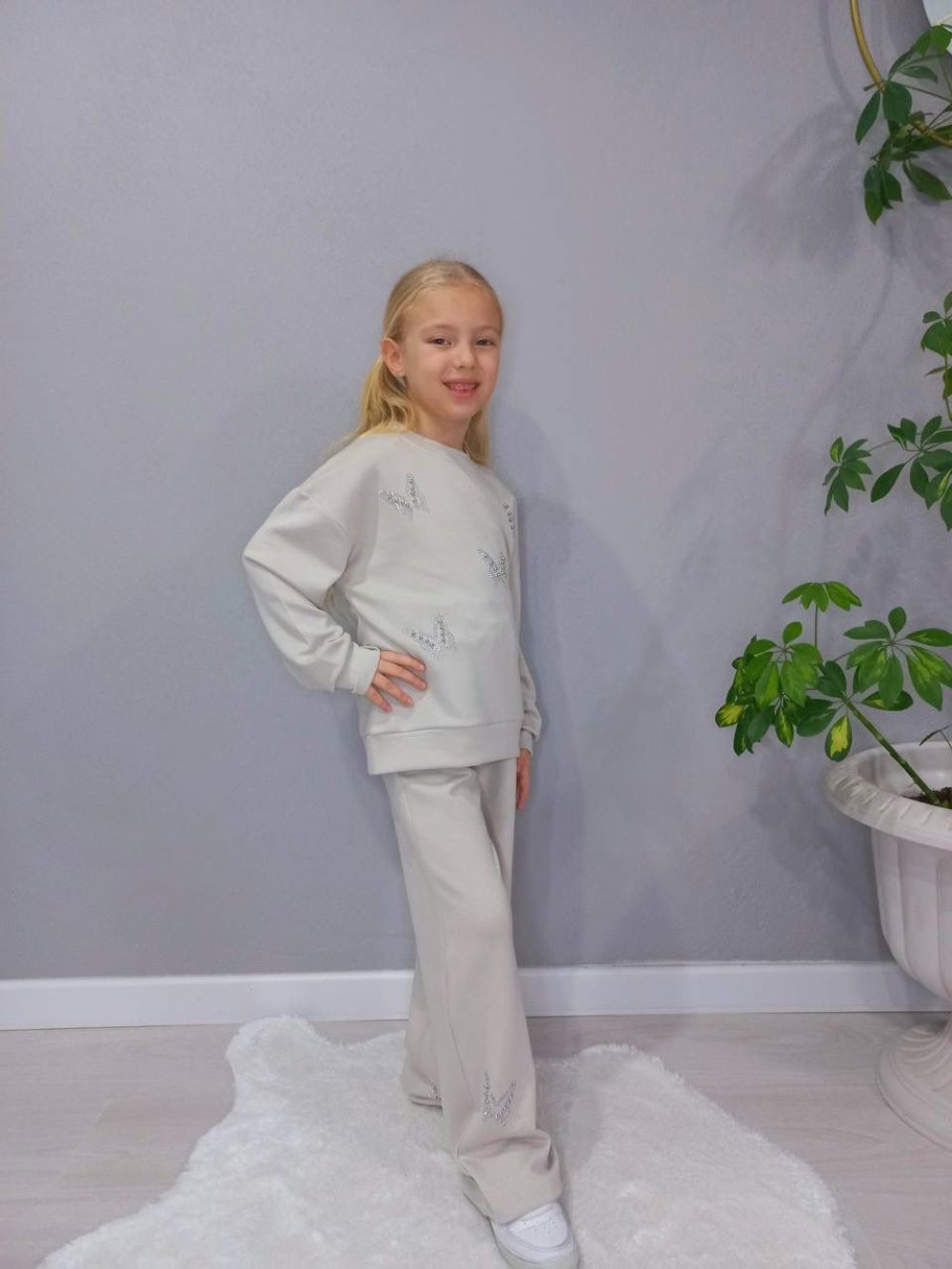 BAYRAMLIK TAŞLI KELEBEKLİ İSPANYOL TAKIM Krem