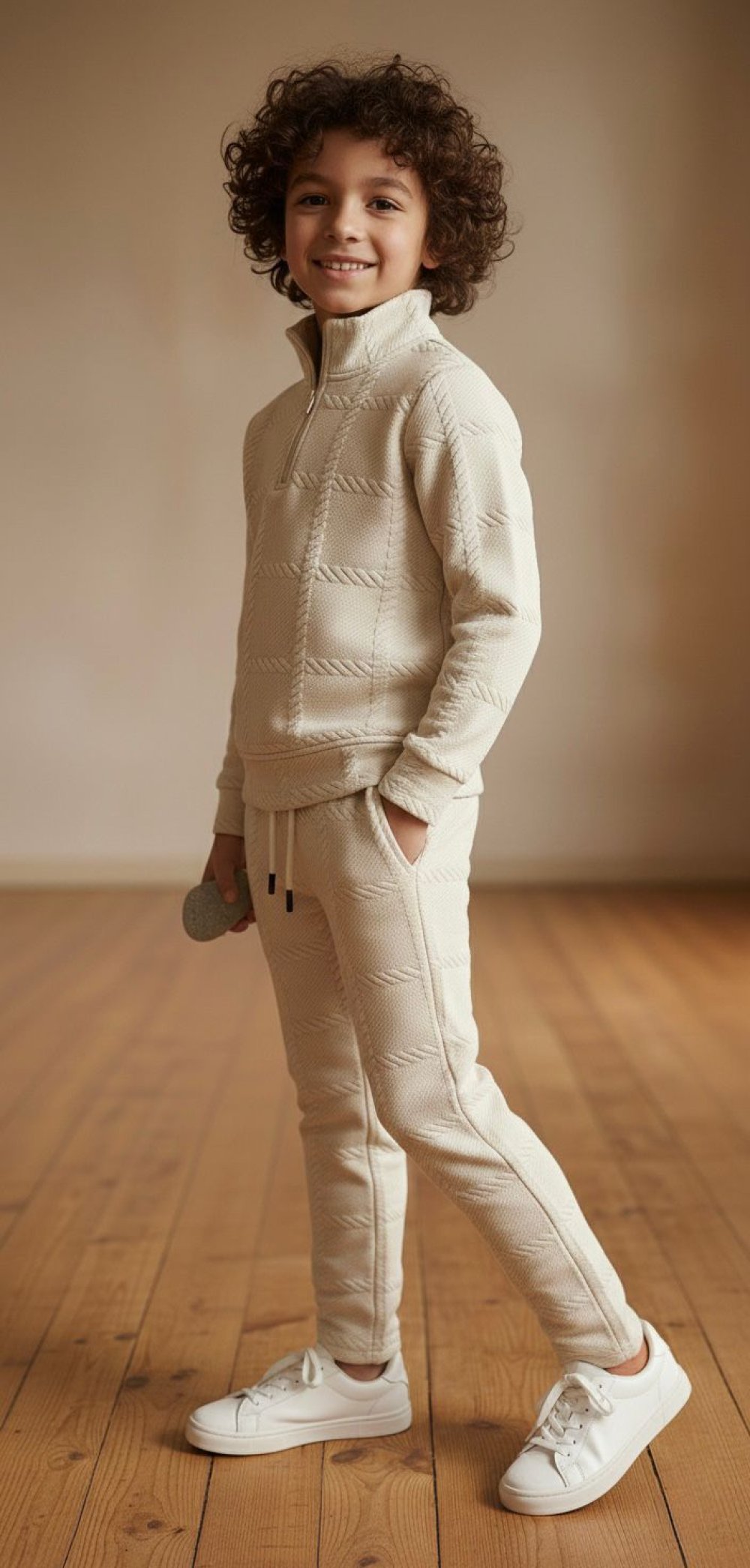 BAYRAMLIK YARIM FERMUARLI ERKEK KAPİTONELİ TAKIM Bej