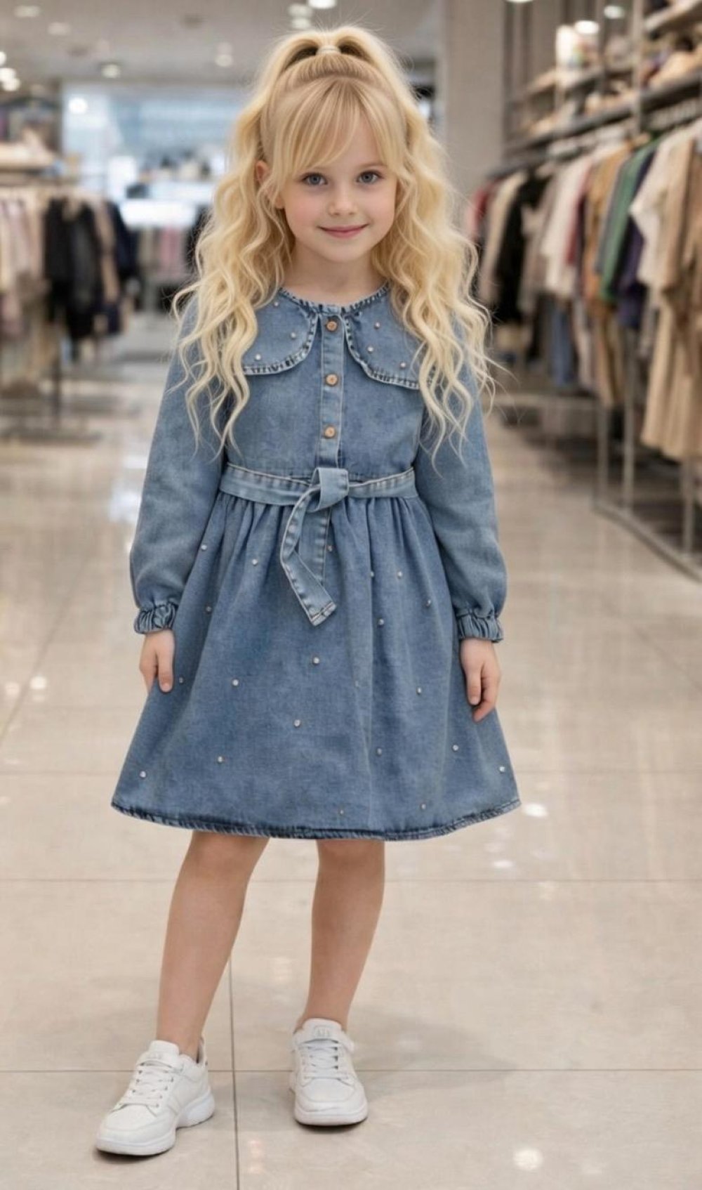 BEL BAĞLAMALI TAŞLI KOT ELBİSE Mavi