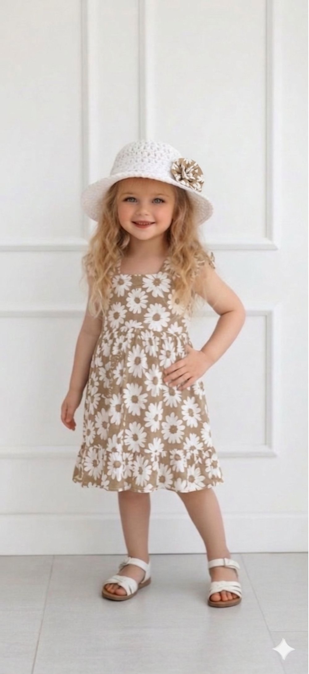 ? Kız Çocuk Yazlık Elbise ? ? 4-9 yaş arası için uygundur ? 4.5 / 8.9 yaş aralığı ? Hafif ve rahat kumaş ? Şık çiçek desenli tasarım ? Uyumlu şapkası ile birlikte ☀️ Yaz aylarında ferah kullanım ✨ Günlük ve özel günler için ideal ? Fiyat: 250