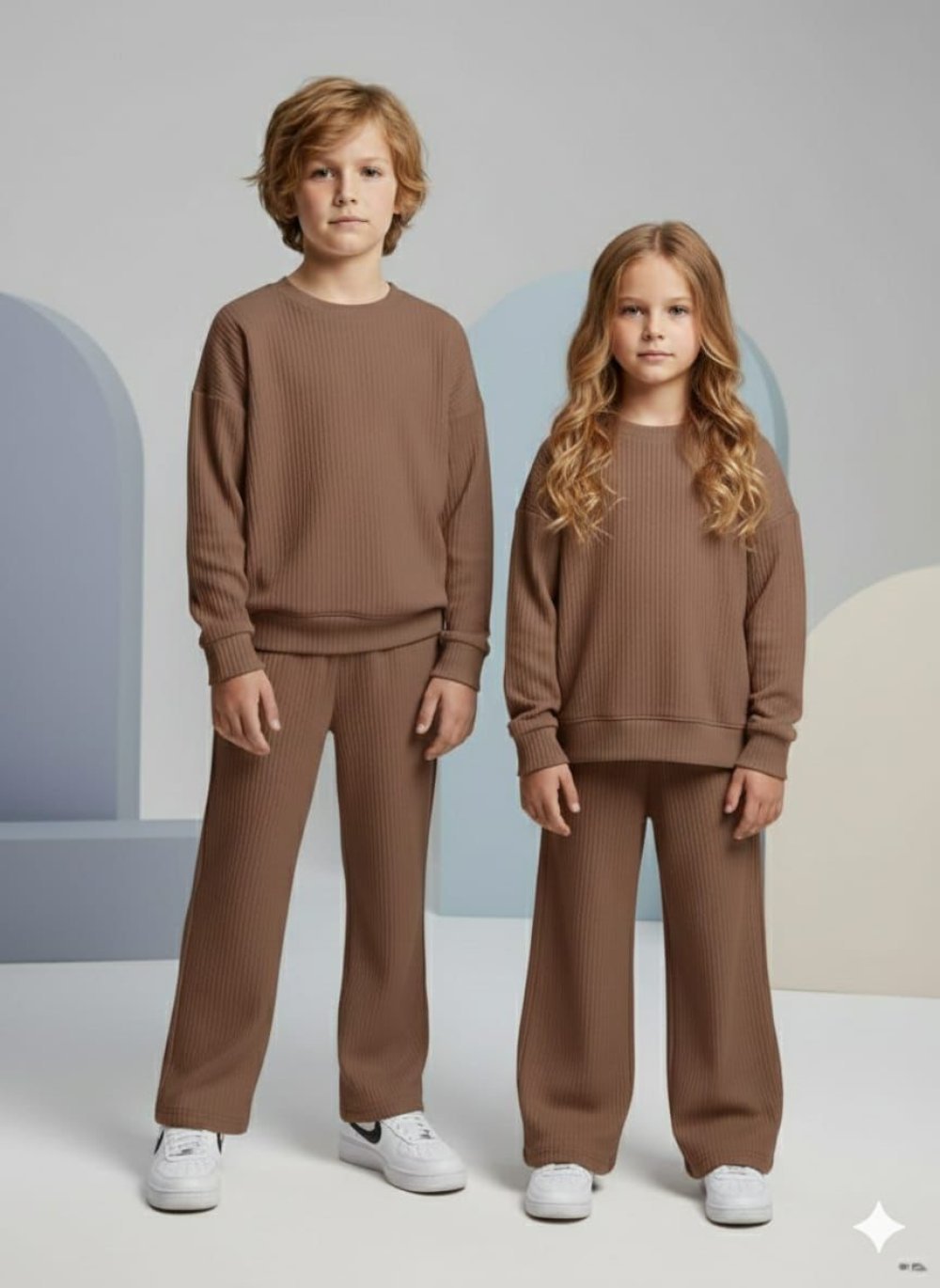 ÇOCUK FİTİLLİ KADİFE RAHAT TAKIM Kahverengi