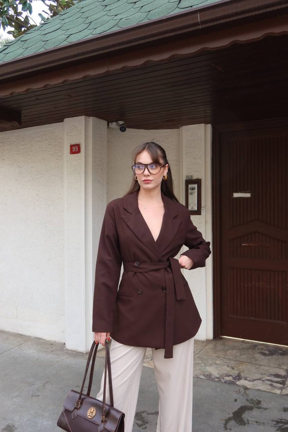 DÜĞMELİ BEL BAĞLAMALI BLAZER KADIN CEKET Kahverengi