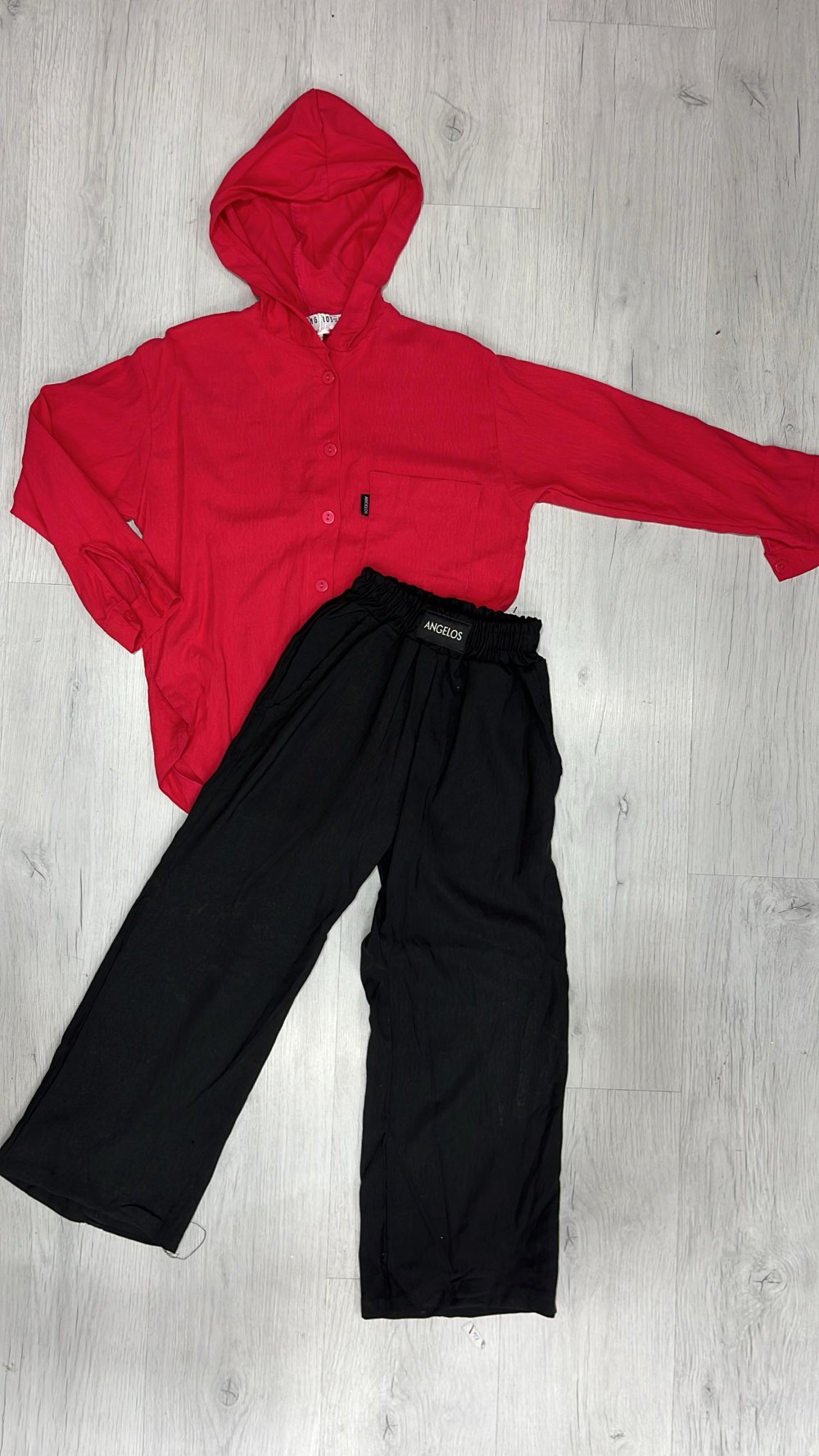 DÜĞMELİ KAPŞONLU TUNİKLİ AYROBİN TAKIM Nar Çiçeği