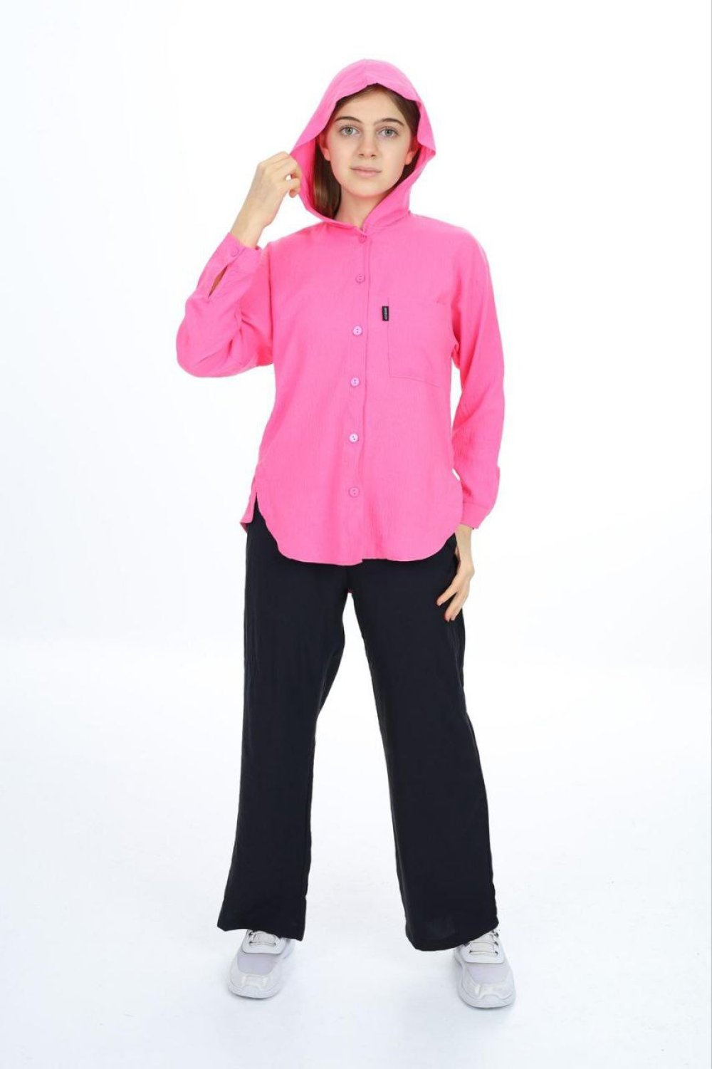 DÜĞMELİ KAPŞONLU TUNİKLİ AYROBİN TAKIM Pembe