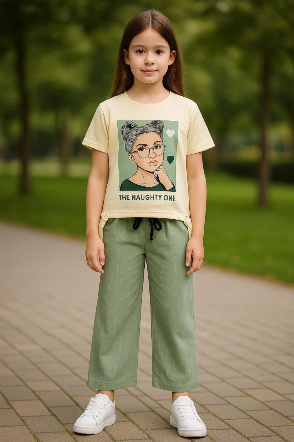 DÜŞÜNEN GÖZLÜKLÜ KIZ BEL BÜZGÜLÜ ALT KETEN İSPANYOL TAKIM Mint Yeşili