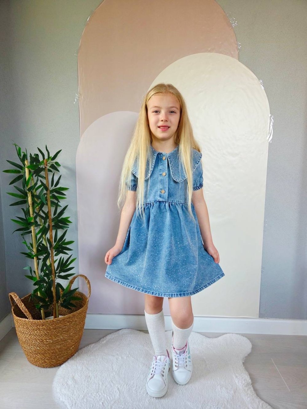 DÜZ TAŞLI KOT ELBİSE Mavi