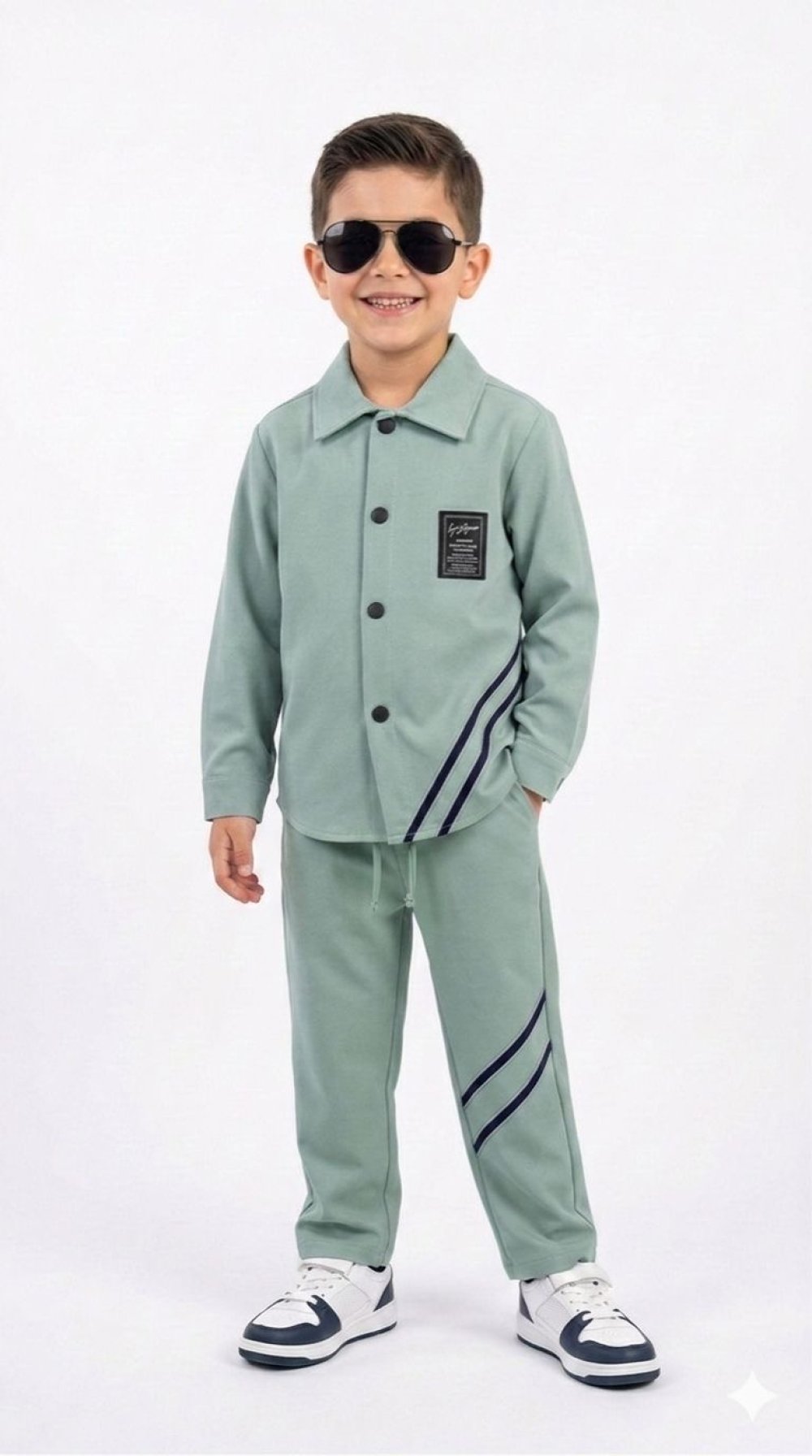 ETİKETLİ DÜĞMELİ İKİLİ PARAŞÜT ERKEK TAKIM Yeşil