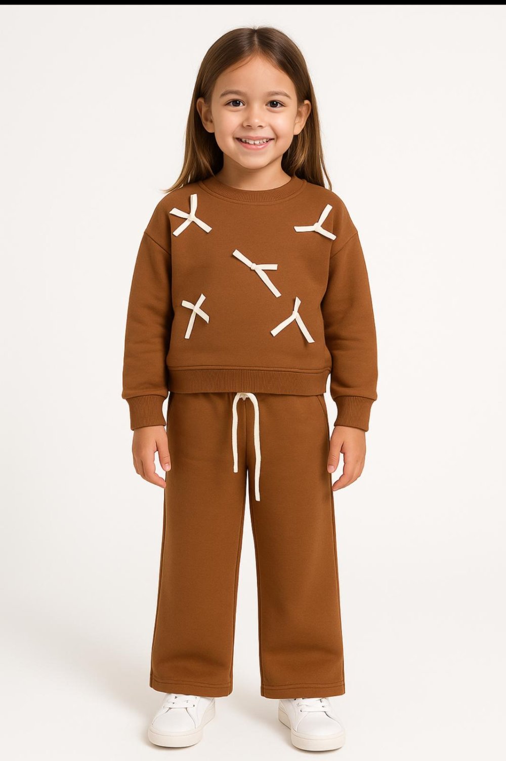 FİYONKLU 3 İP ŞARDONLU KIZ TAKIM Kahverengi