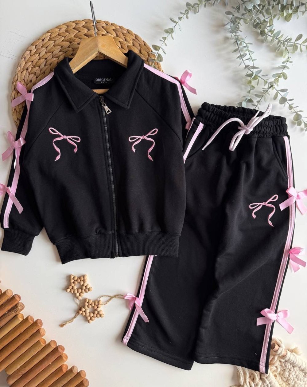 FİYONKLU 3 İP ŞARDONSUZ TAM FERMUAR KIZ TARZ TAKIM Siyah