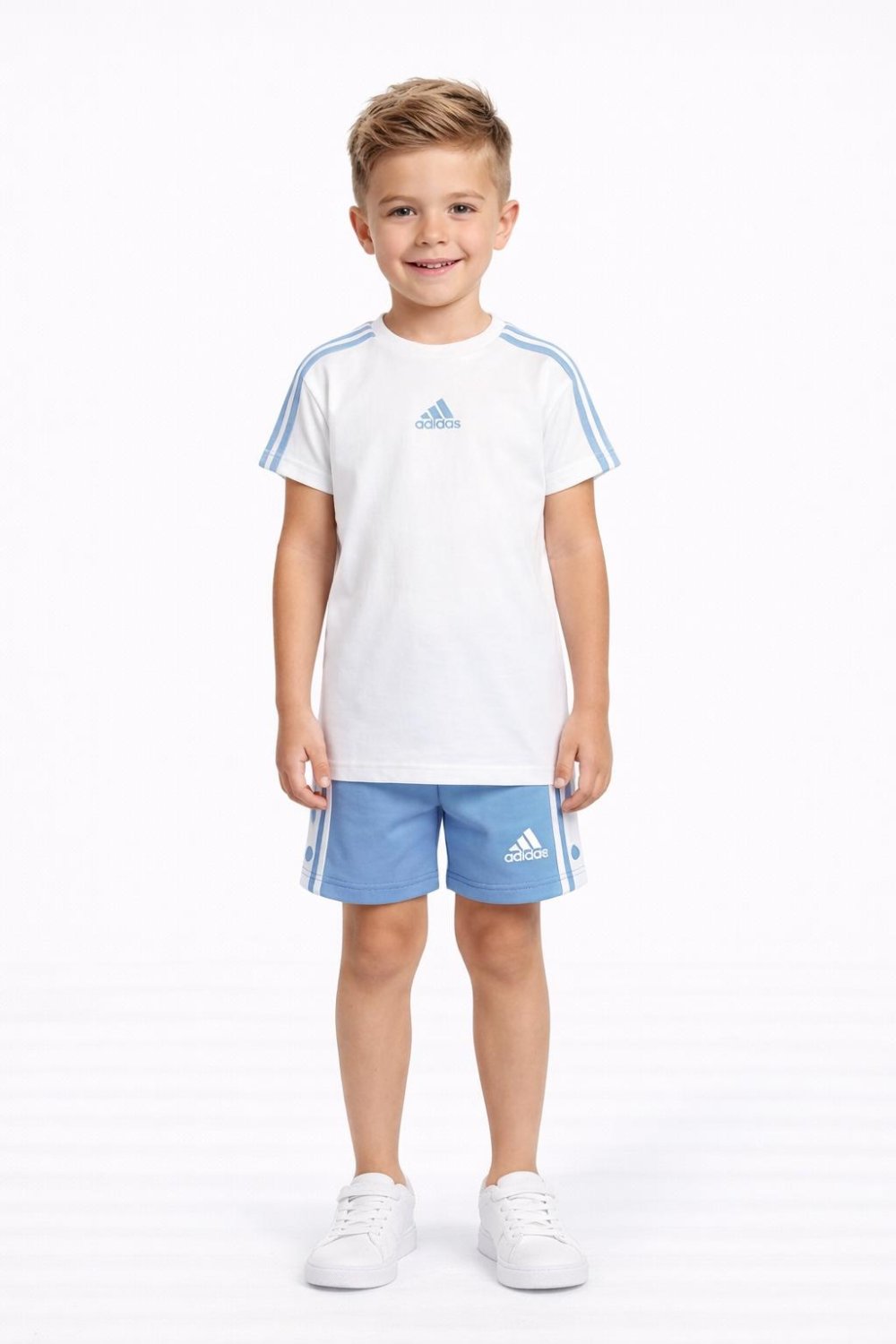 GARSON BOY ADİDAS OMZU ŞERİTLİ ALTI DÜĞMELİ ŞORTLU TAKIM Mavi