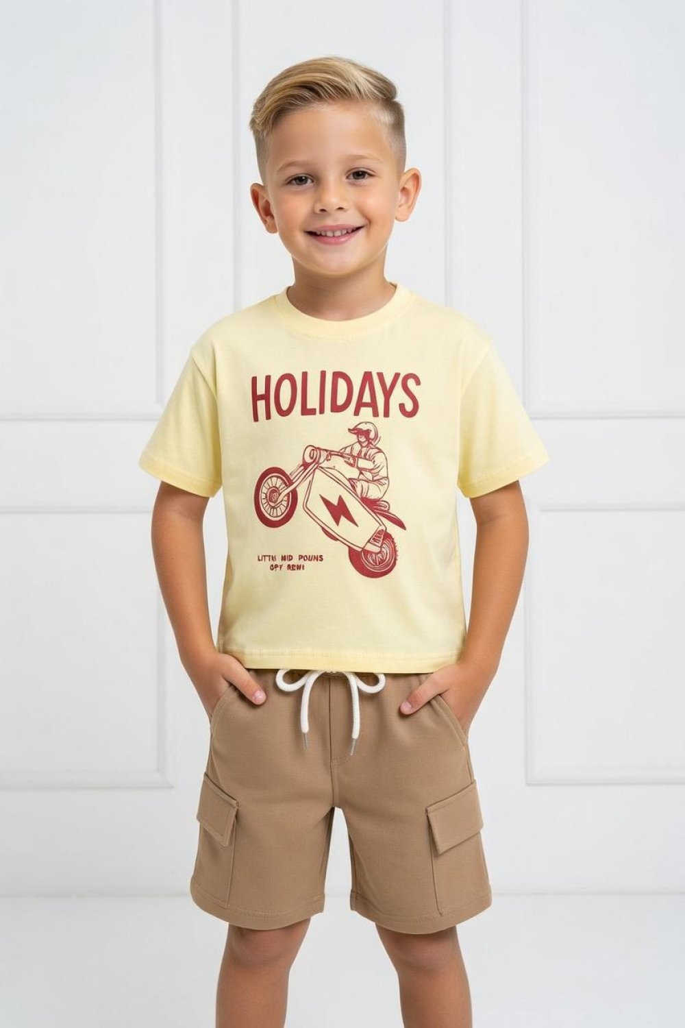 GARSON BOY HOLİDAY MOTOR BASKILI ŞORTU TAKIM Bej