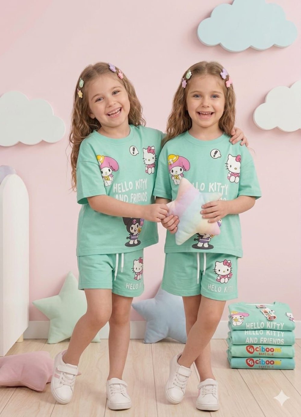 ✨ HELLO KITTY & FRIENDS ŞORTLU TAKIM ✨ ? 3-12 yaş ? Renkli ve eğlenceli Hello Kitty & Friends baskılı üst ? Sırt baskısı ile ekstra tarz ve detay ? Rahat şort ile günlük kullanıma uygun ? Hem konforlu hem miniklerin favorisi olacak şık tasarım ? Fiyat: 600 TL ? Hızlı gönderim ?️ Minik prensesler için hem rahat hem çok sevimli bir kombin! ?