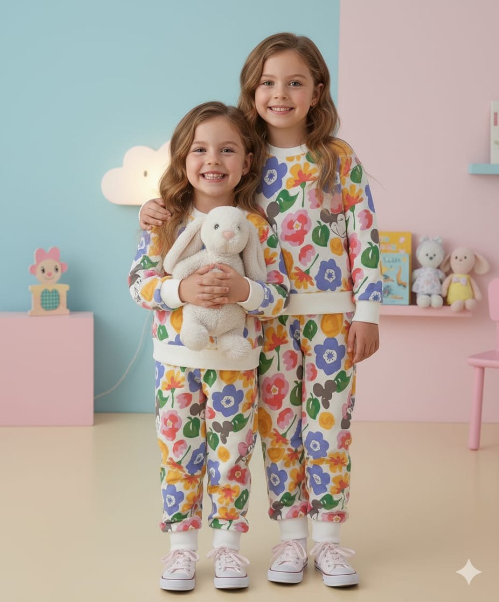 HER YERİ ÇİÇEKLİ KIZ TAKIM Beyaz