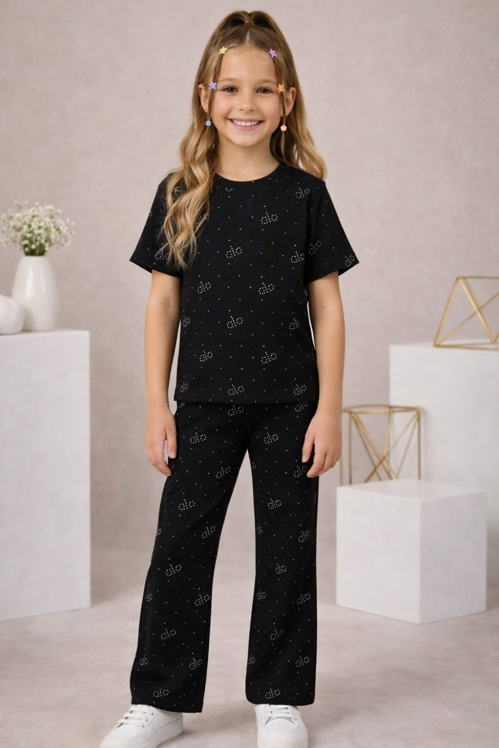 ✨ ALO YAZILI TAŞLI İSPANYOL TAKIM ✨ ? 7-8-9-10 yaş ? Her yeri “ALO” yazılı, taşlı şık tasarım ? Kısa kol üst ile rahat ve ferah kullanım ? İspanyol paça alt ile modern ve dikkat çekici tarz ? Günlük kullanımda hem rahat hem trend görünüm ? Fiyat: 600 TL ? Hızlı gönderim ?️ Tarzıyla fark yaratmak isteyen minikler için harika bir seçim! ?
