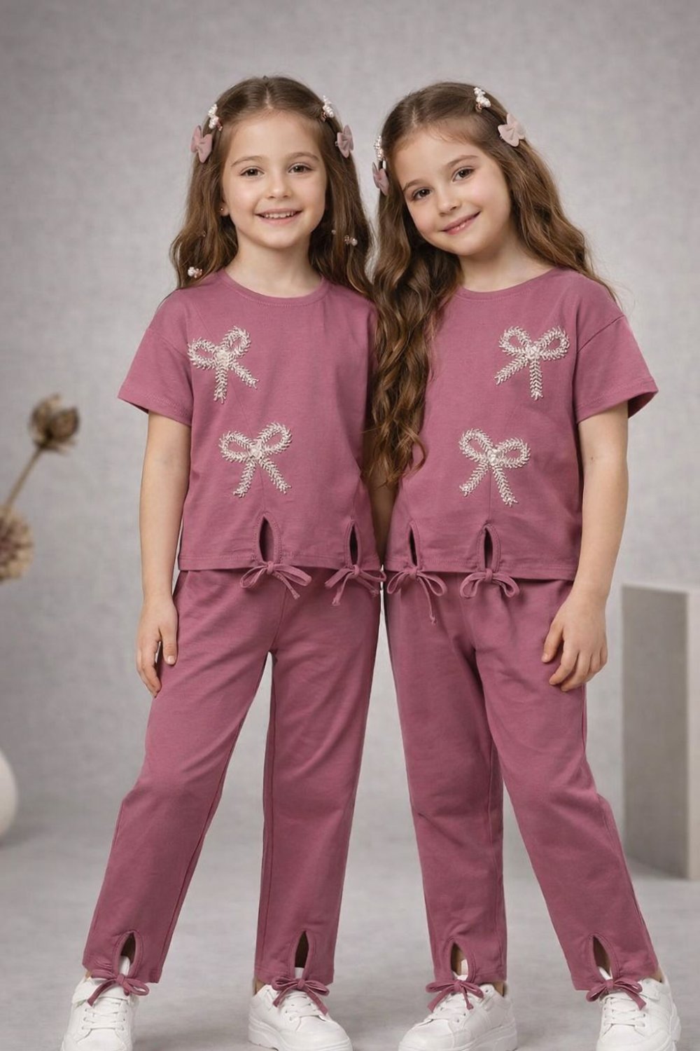 ✨ FİYONKLU ŞIK TAKIM ✨ ? 6-13 yaş arası ? Üst kısmı fiyonk detaylı, kısakol tişört ? Alt parça ipli, paça ucu yırtmaçlı modern tasarım ? Rahat ve yumuşak kumaş yapısı ? Günlük kullanımda hem şık hem konforlu ? Fiyat: 600 TL ? Hızlı kargo ?️ Şıklığı ve rahatlığı bir arada isteyen minikler için ideal!