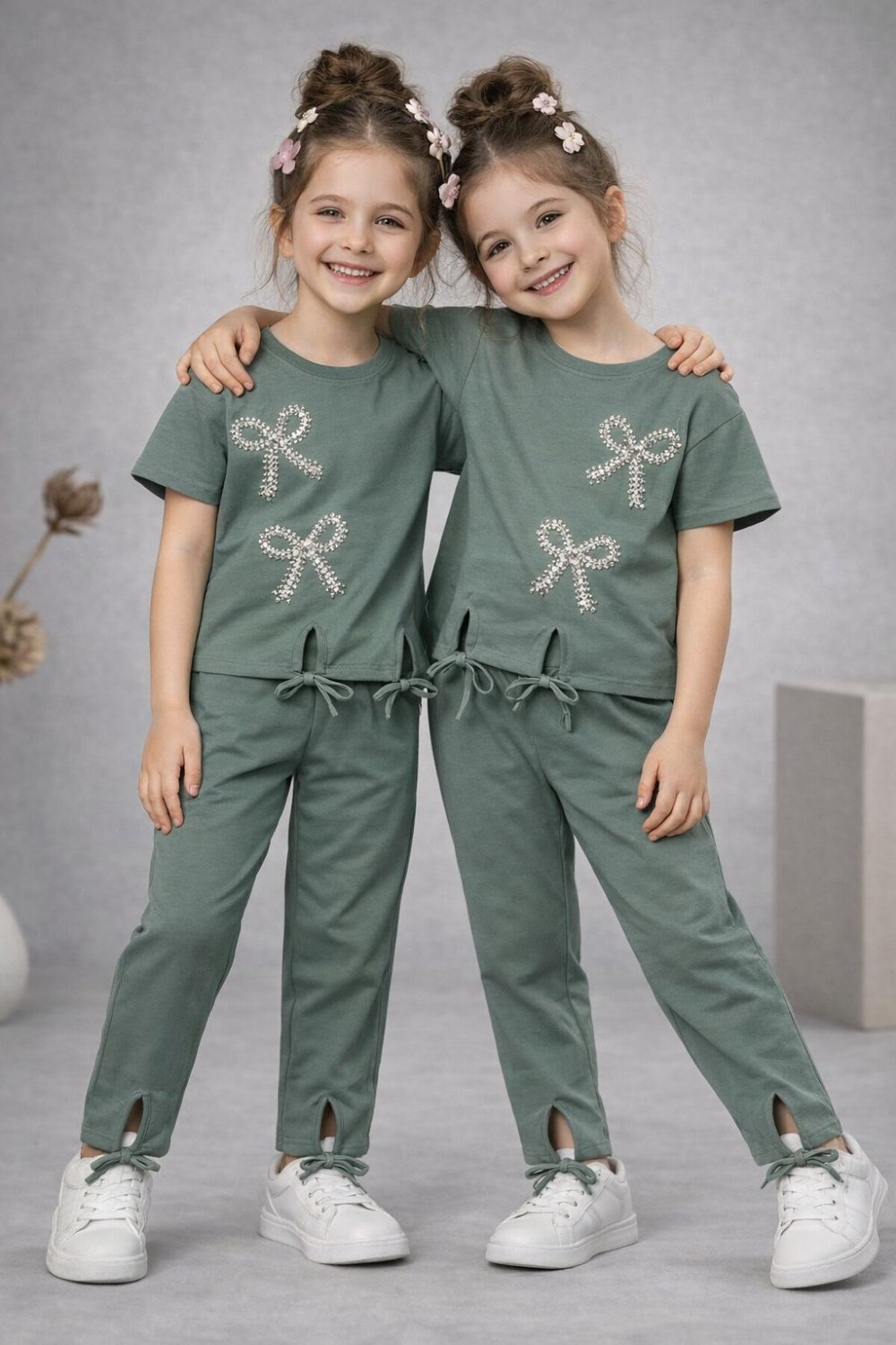 ✨ FİYONKLU ŞIK TAKIM ✨ ? 6-13 yaş arası ? Üst kısmı fiyonk detaylı, kısakol tişört ? Alt parça ipli, paça ucu yırtmaçlı modern tasarım ? Rahat ve yumuşak kumaş yapısı ? Günlük kullanımda hem şık hem konforlu ? Fiyat: 600 TL ? Hızlı kargo ?️ Şıklığı ve rahatlığı bir arada isteyen minikler için ideal!