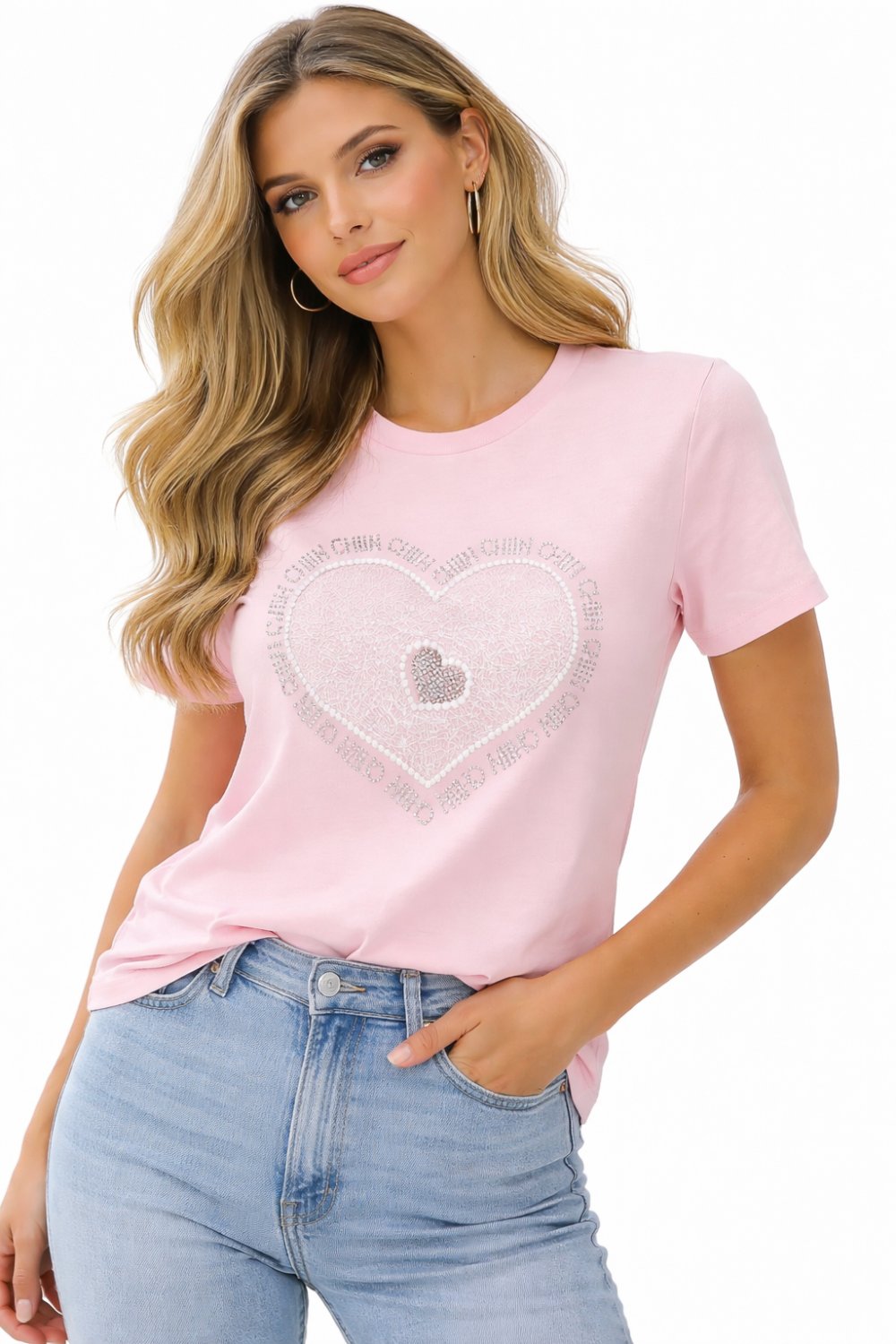 KALP İÇİNDE MİNİK KALPLİ TEK TŞÖRT Pudra