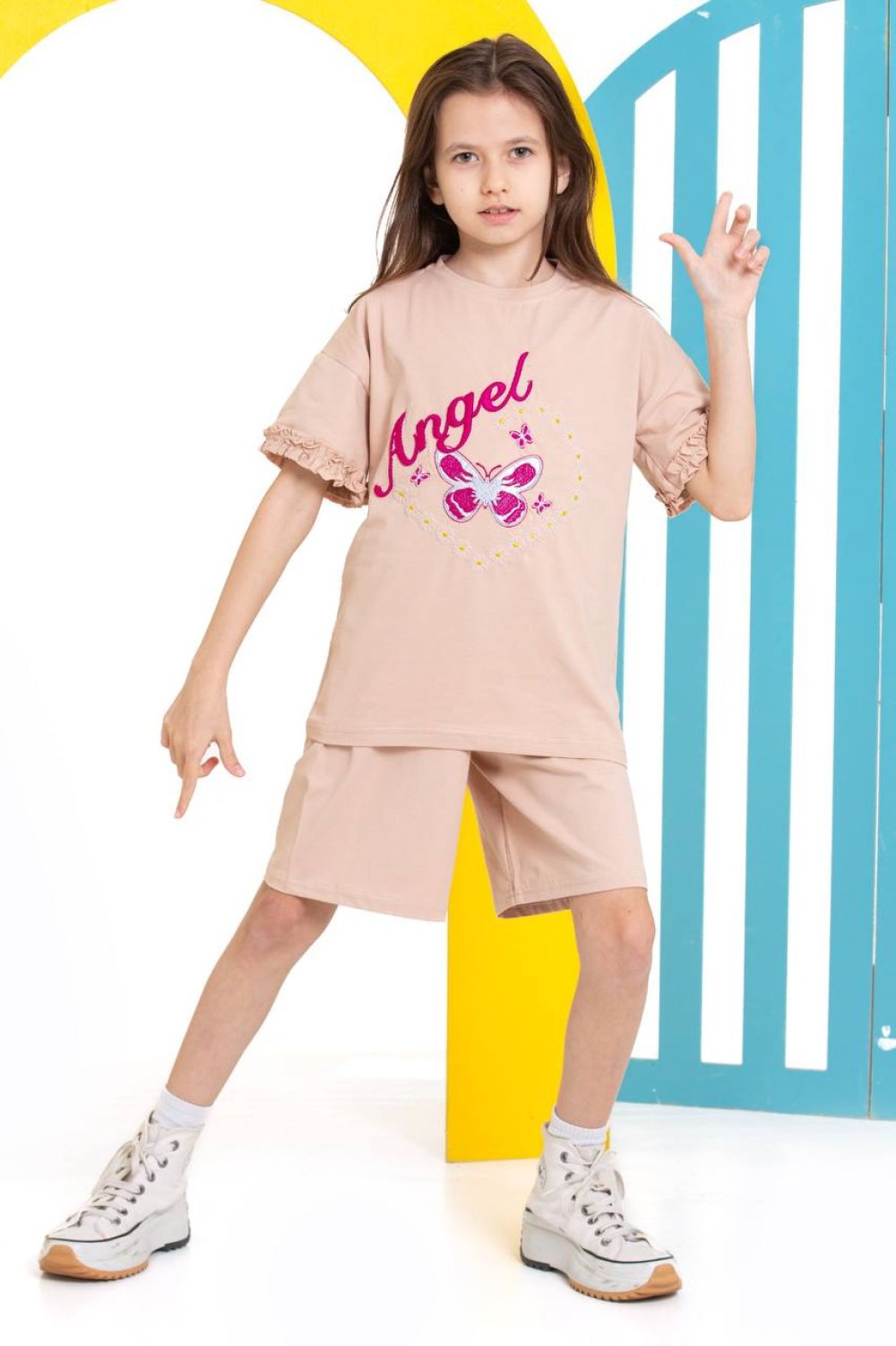 KALP ORTASI KELEBEK ANGEL ŞORTLU KIZ TAKIM Bej