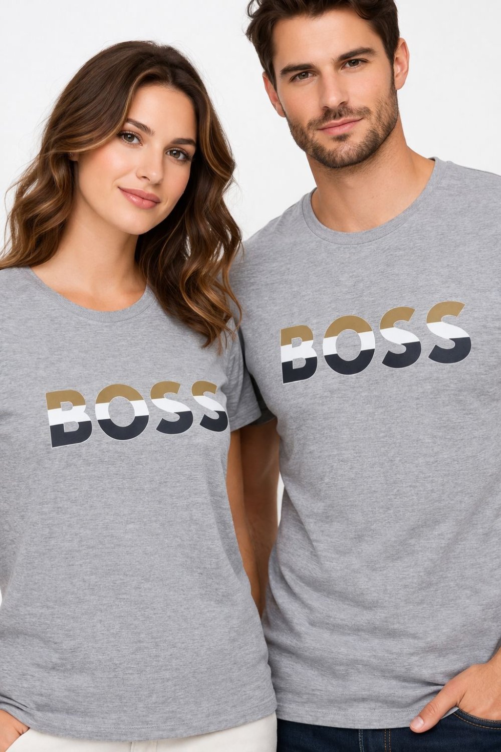 KAMPANYALI BOSS YAZILI TEK TŞÖRT Gri