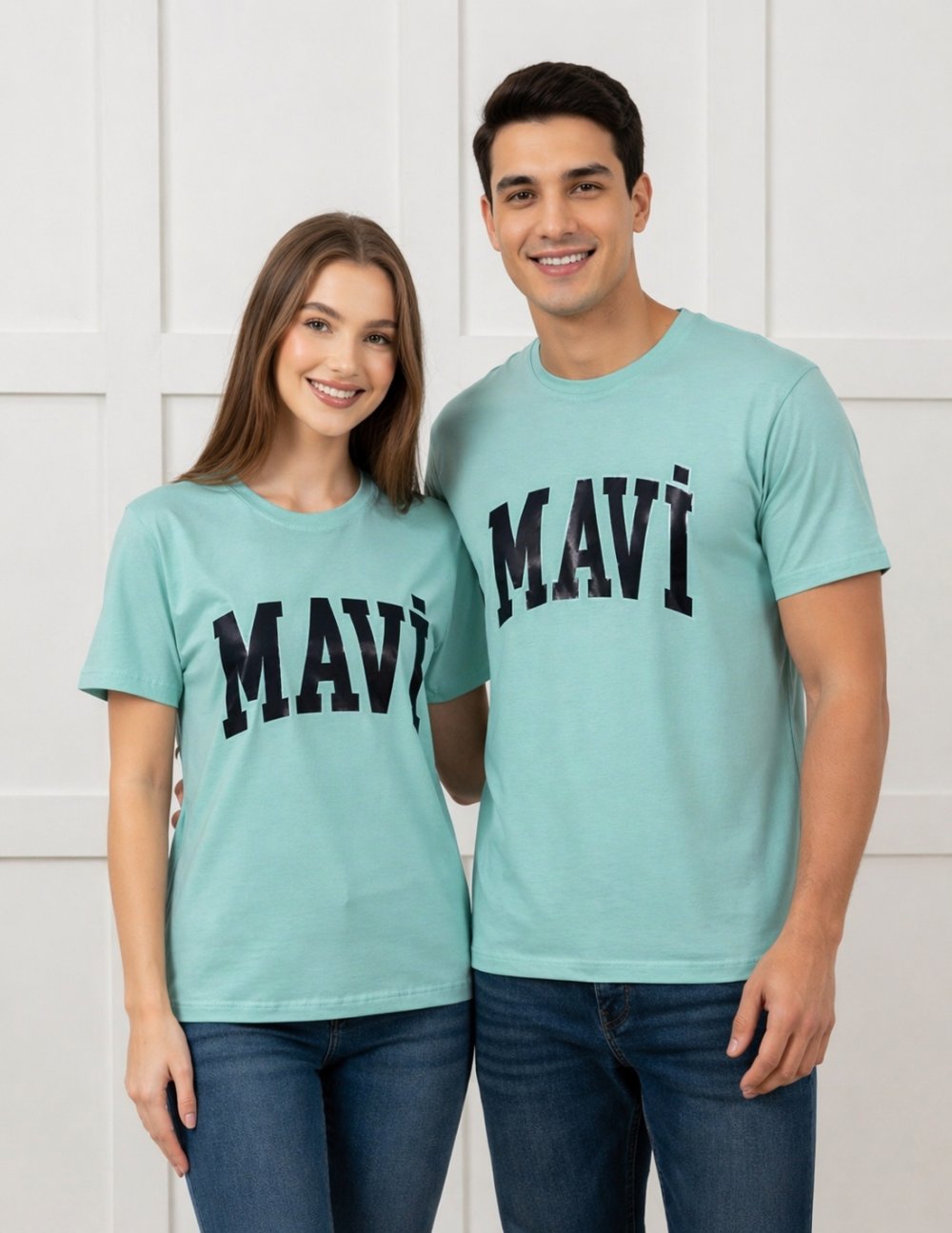KAMPANYALI BÜYÜK DALGALI MAVİ YAZILI TEK TŞÖRT Mint Yeşili