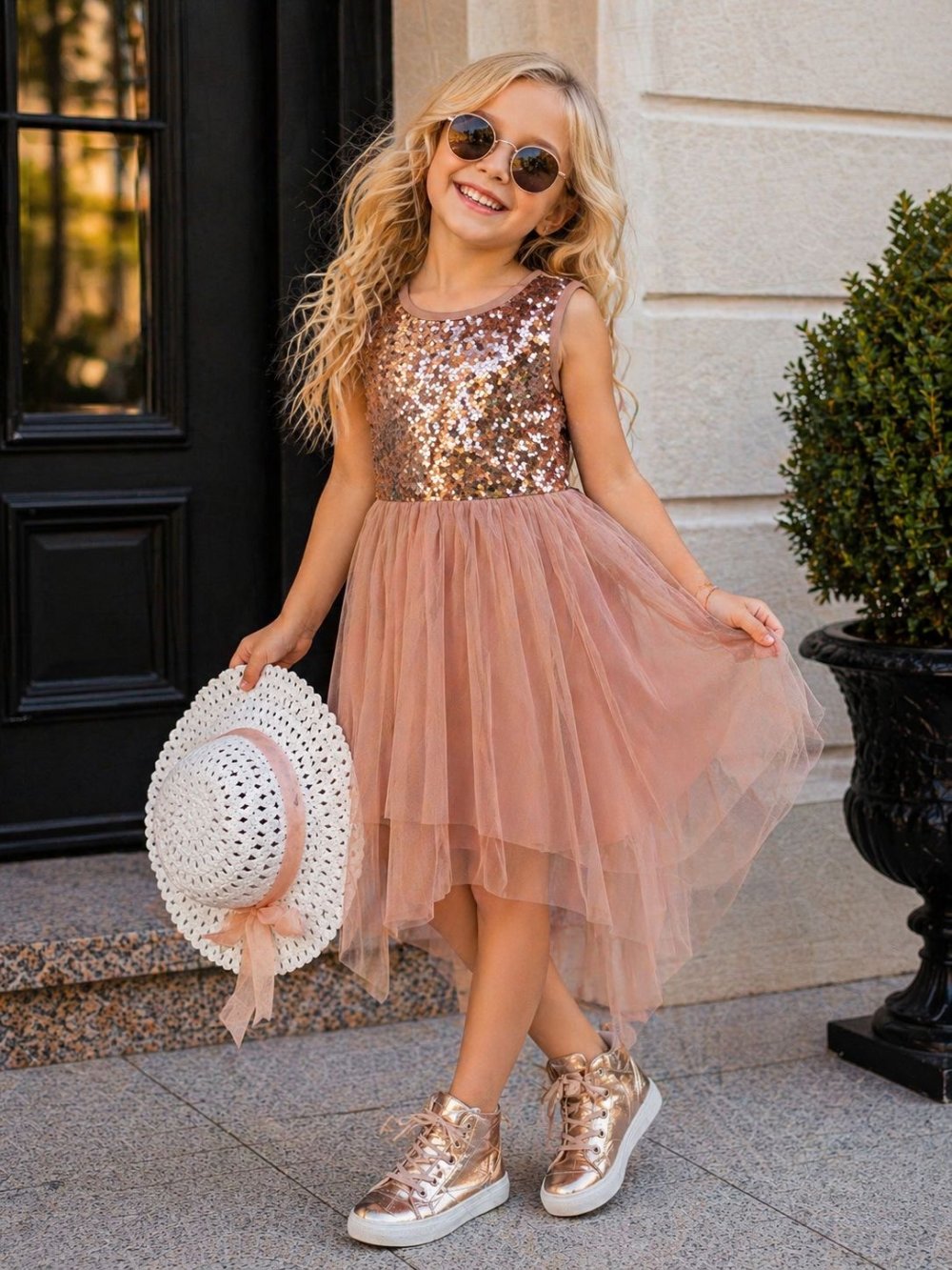 Kampanyalı Şapkalı Pullu Arkası Uzun Elbise Gül