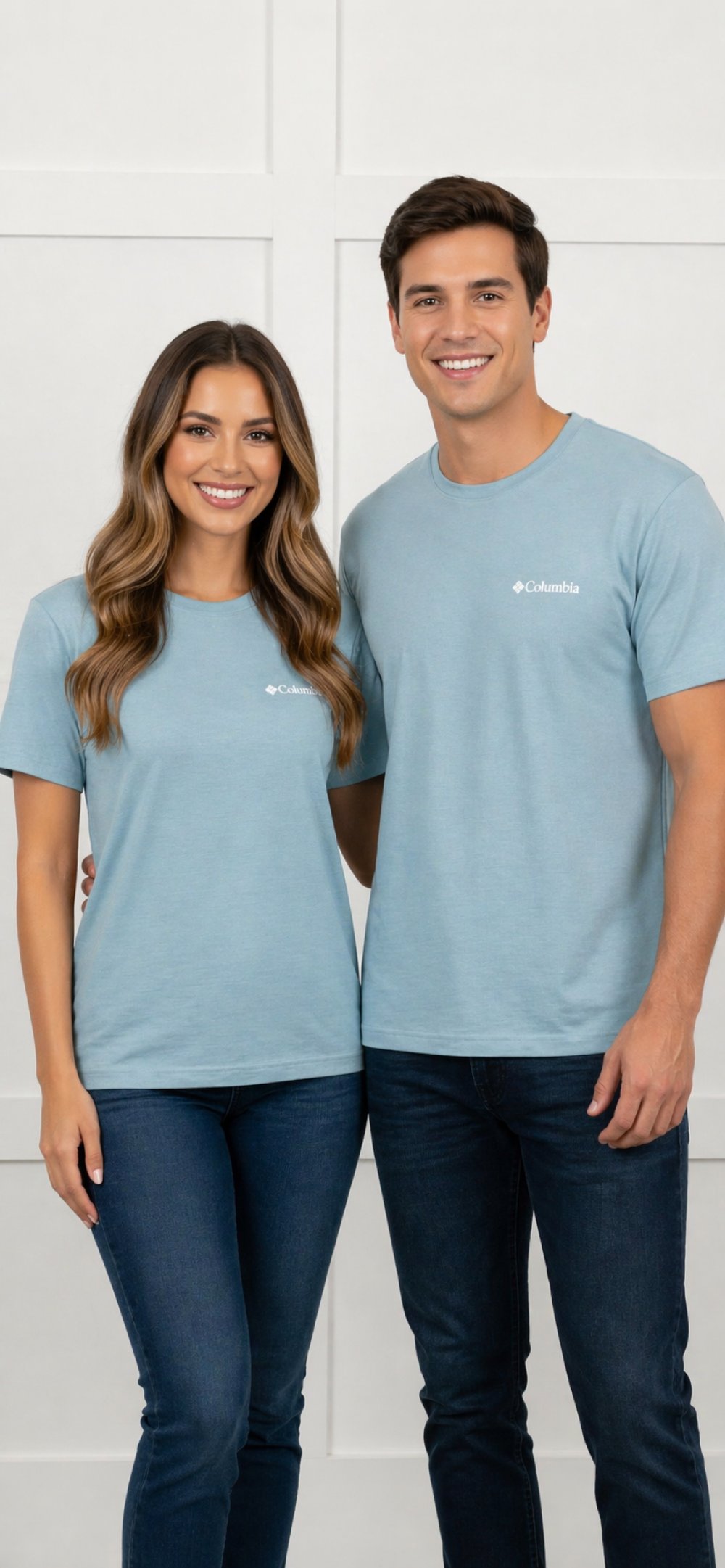 KAMPANYALI UNİSEX COLOMBİA BEYAZ YAZILI TEK TİŞÖRT Gök Mavi