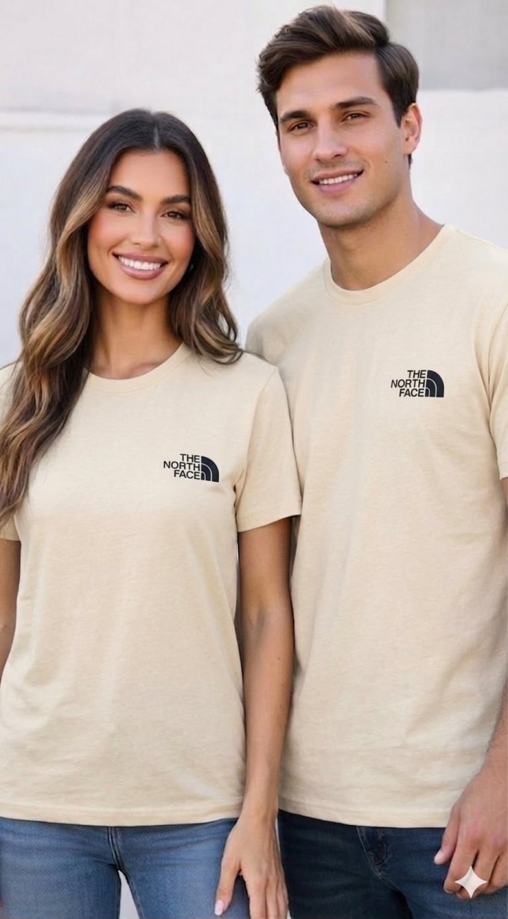 KAMPANYALI UNİSEX THE NORTC YAZISI SİYAH TEK TİŞÖRT Bej