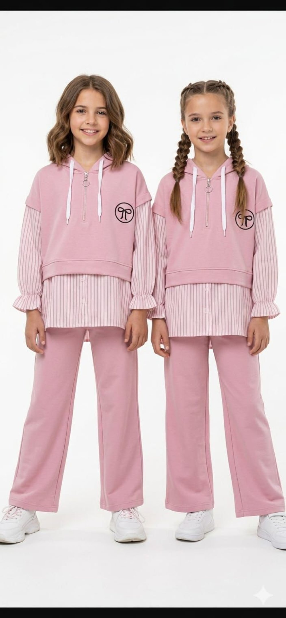 KAPŞONLU YARIM FERMURLI GÖMLEK DETAYLI KIZ TAKIM Pembe