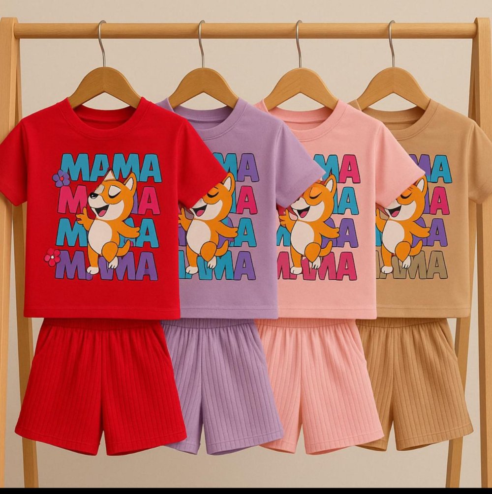 KEDİLİ MAMA ŞORTLU KIZ TAKIM Fuşya