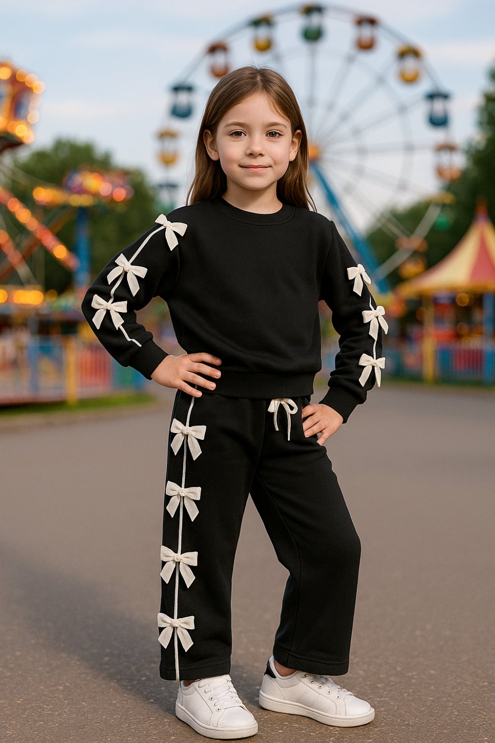 KOLLARI EŞOFMANI FİYONKLU ŞERİTLİ KIZ TAKIM Siyah