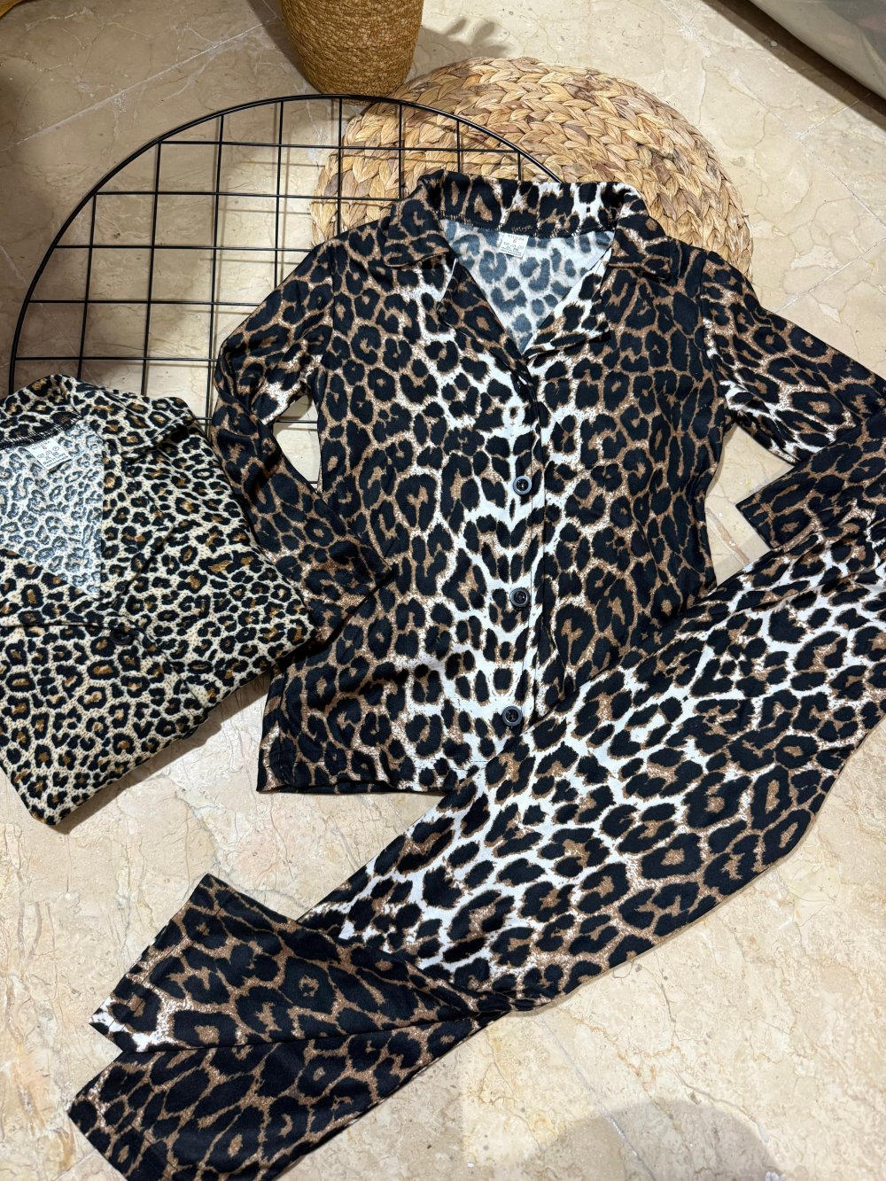 KÜÇÜK LEOPARLI SÜET KIZ PİJAMA TAKIMI Leopar