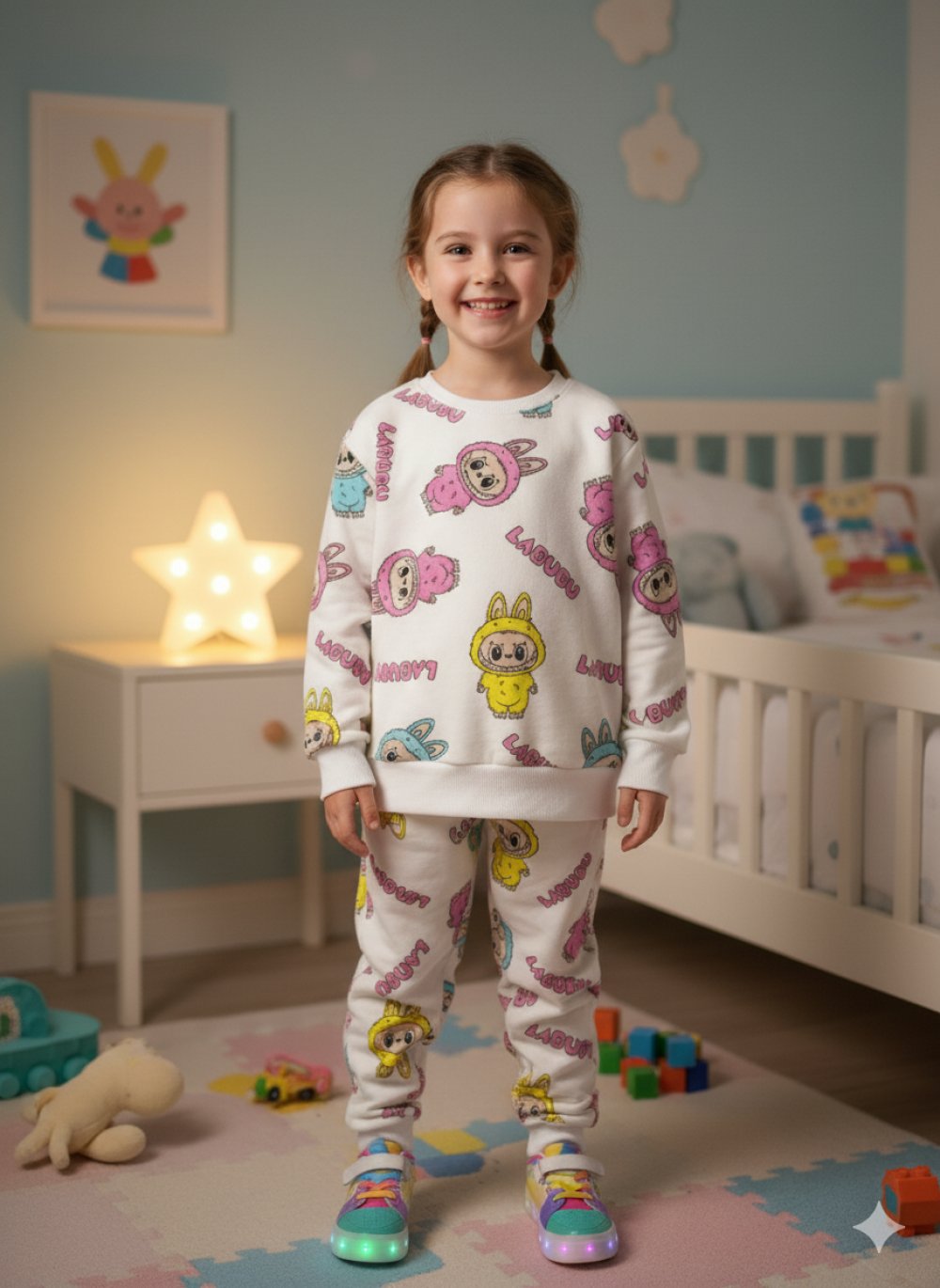 LABUBU 2 İP ŞARDONLU KIZ TAKIM Beyaz