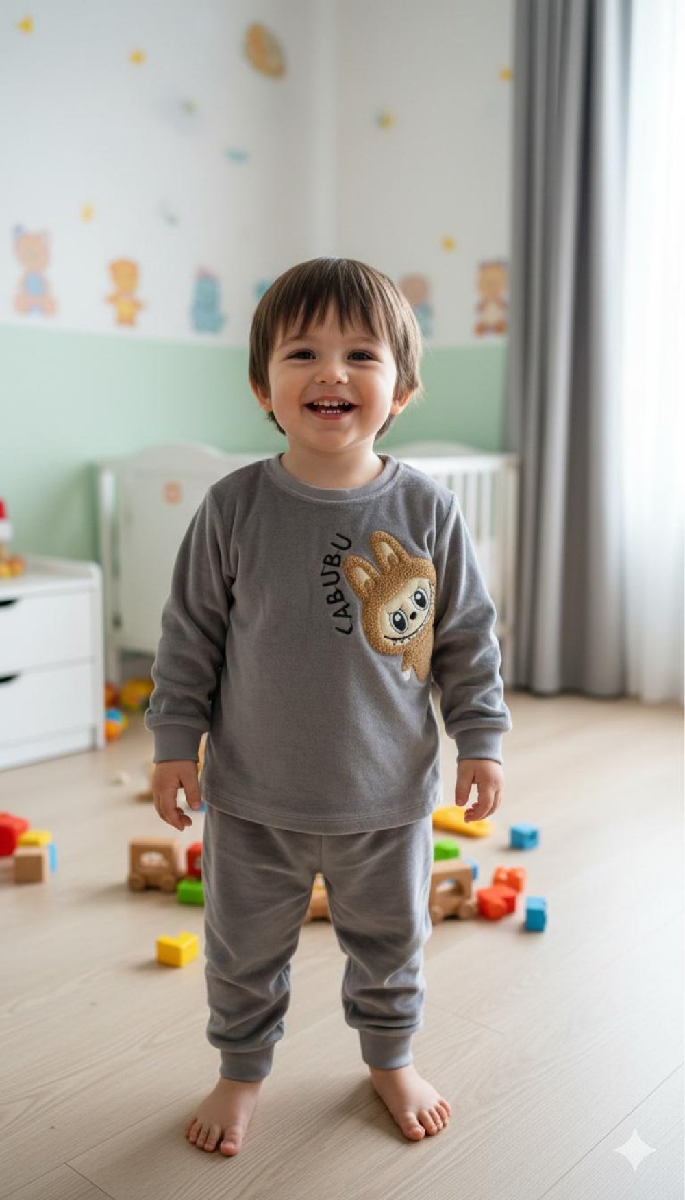 LABUBU DETAYLI UNİSEX BEBEK TAKIM Gri