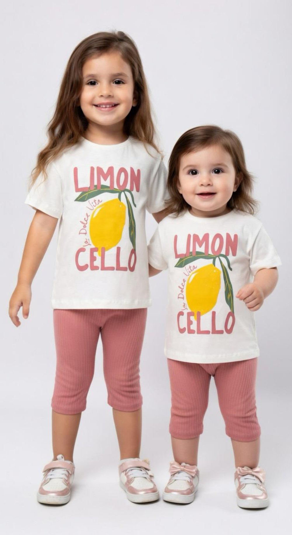 ? Limon Cello Yazılı Fitilli Kapri Taytlı Takım ? ? 2-5 yaş arası minikler için süper rahat ve şık! ? Fitilli kumaş ile yumuşacık konfor ? Kapri ve taytlı tasarım, hem oyun hem günlük kullanım için ideal ? Fiyat: 400 ₺ ? Hemen teslim, kaçırma!