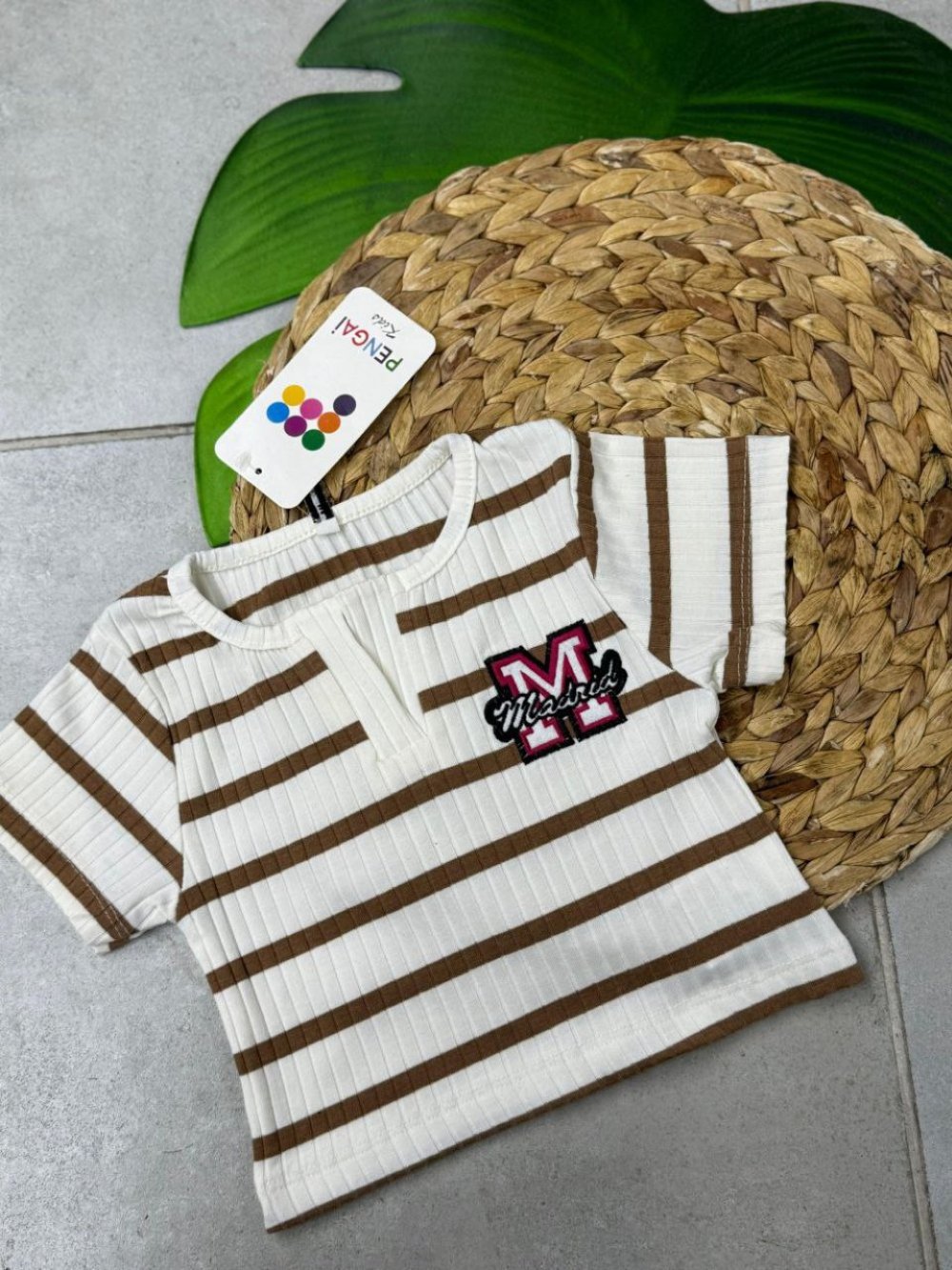M YAZILI ÇİZGİLİ CROP Kahverengi