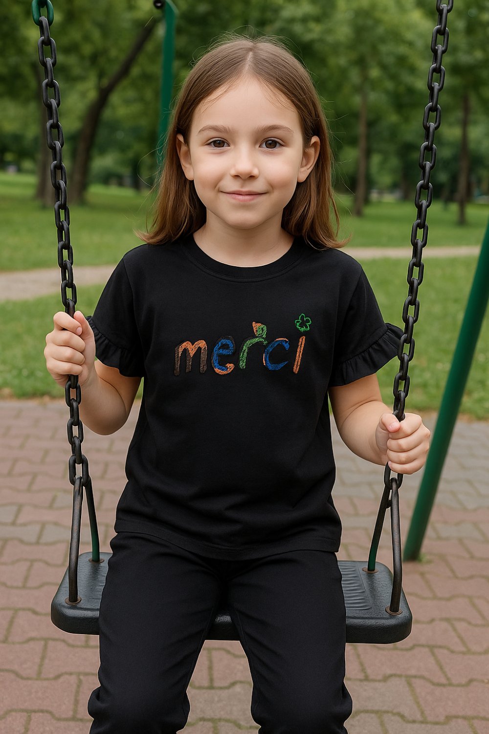 MERCİ KOLLARI FIRFIR KIZ TİŞÖRT Siyah