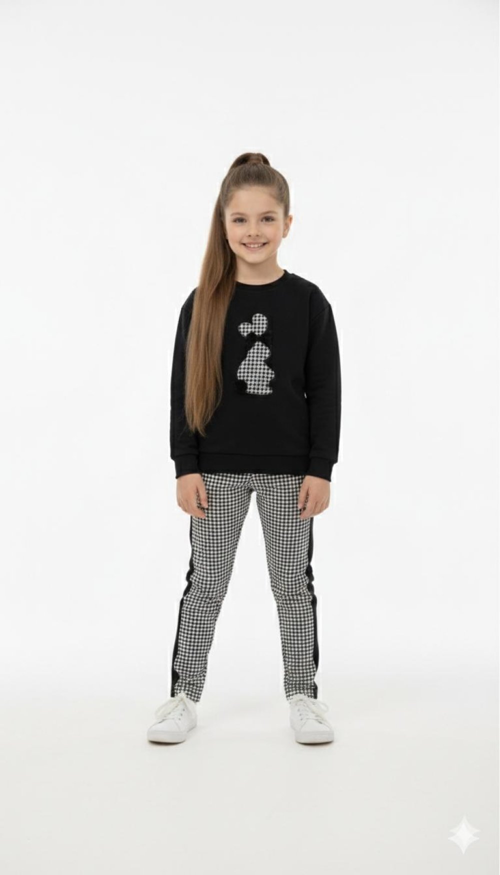 MEVSİMLİK RENKLİ ÜST PONPON TAVŞANLI ALT KARELİ YANLAR ŞERİTLİ TAKIM Siyah