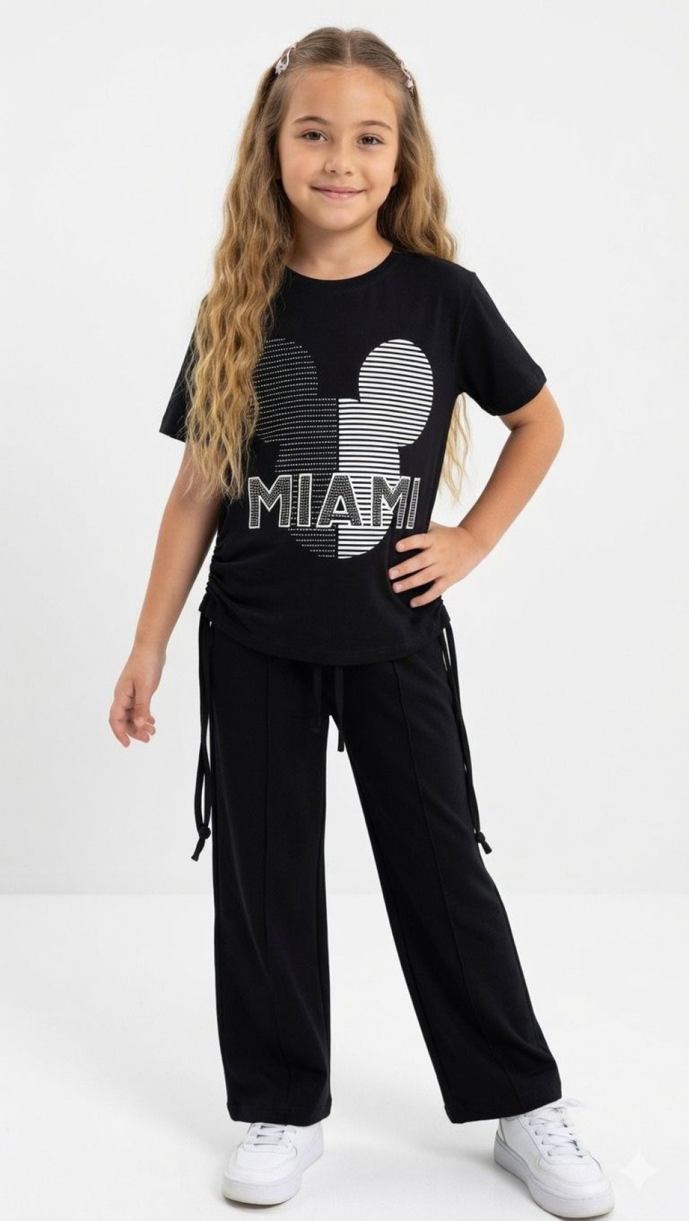 MIAMI MICKEY KAFALI KISAKOLLU ALT UZUN EŞOFMAN TAKIMI Siyah